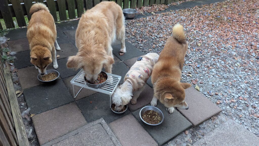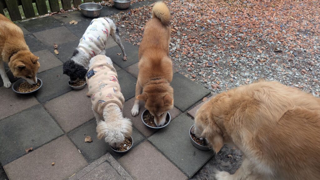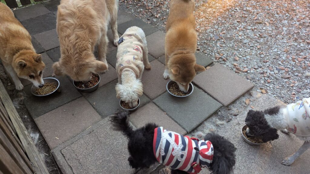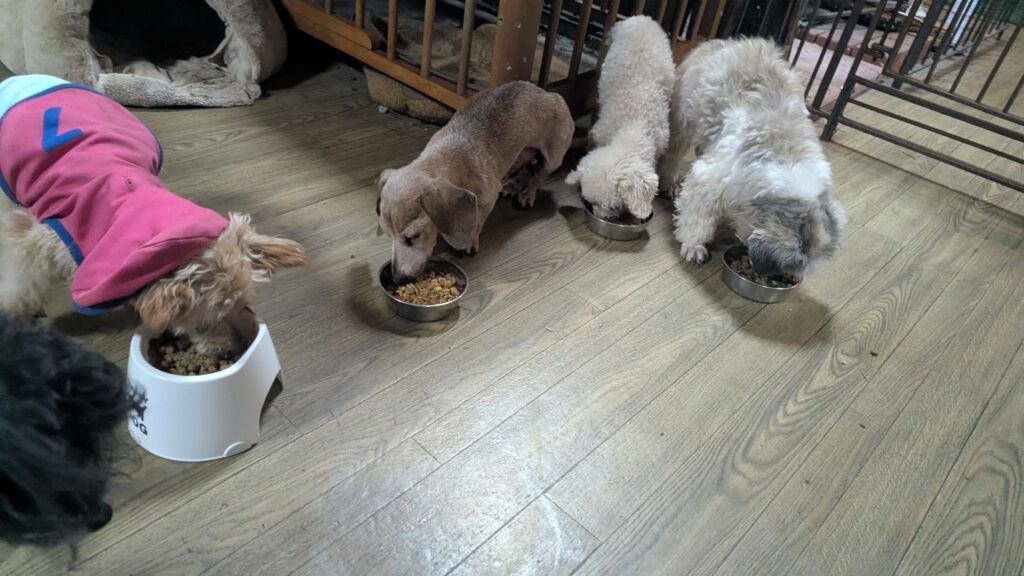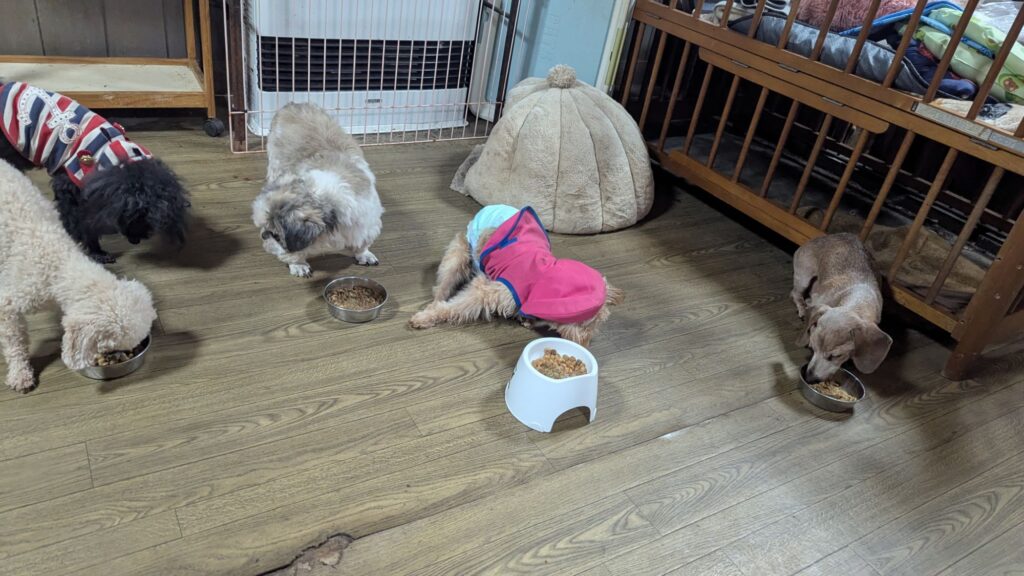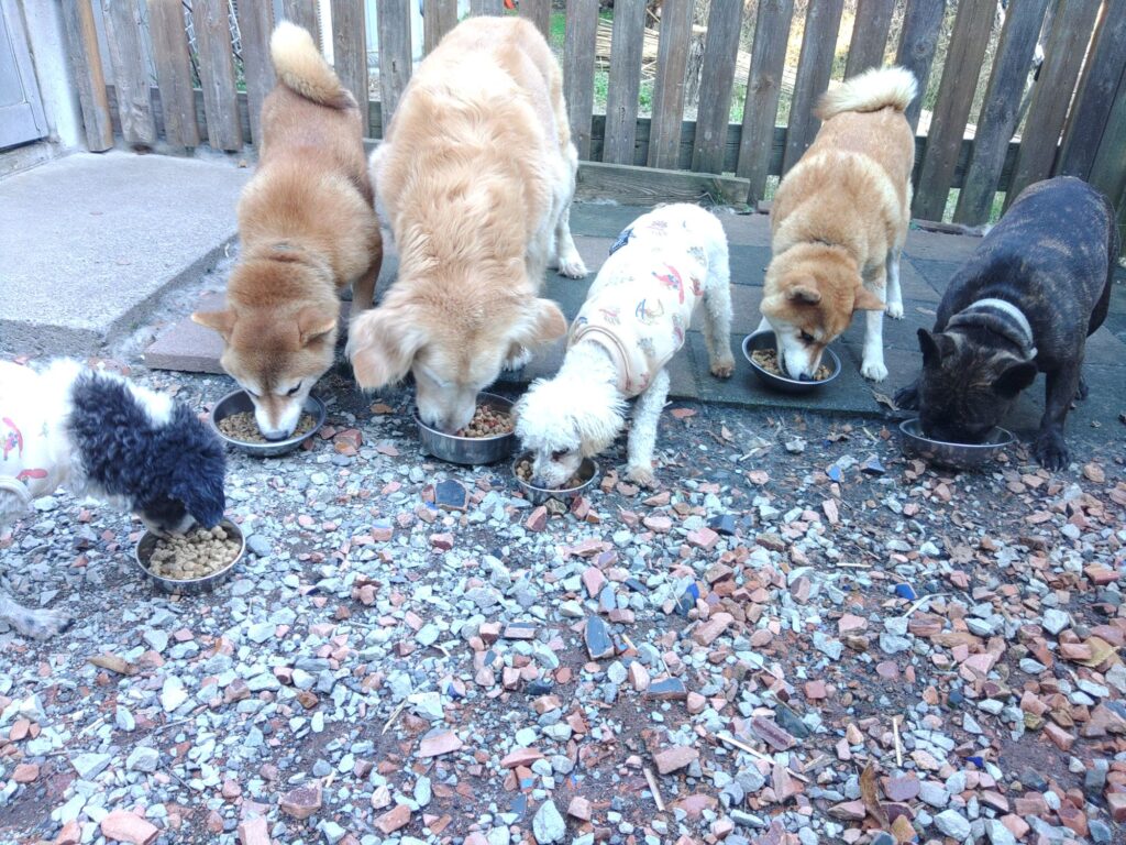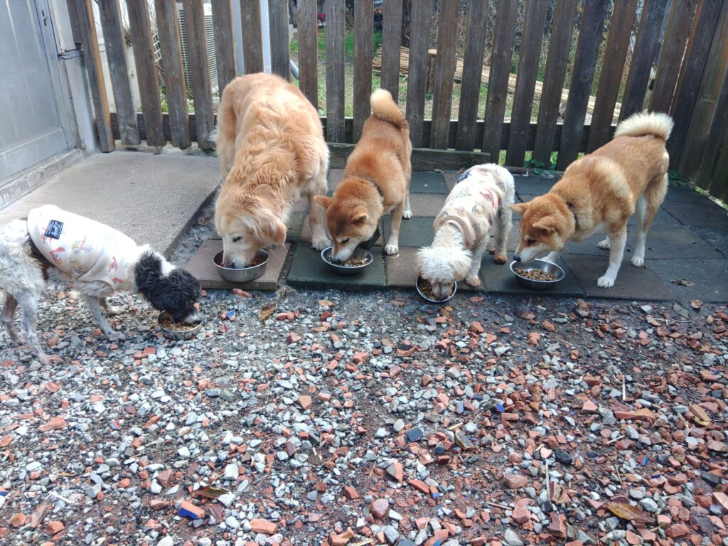 生涯お預かりミックスサスケくん、柴犬ハルちゃん、マルプーらんまるくん、ボルゾイはなこちゃんしっかり完食しました。