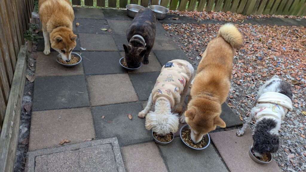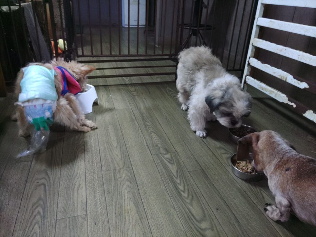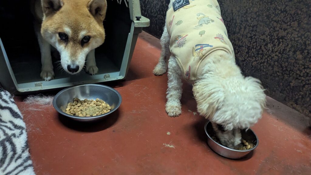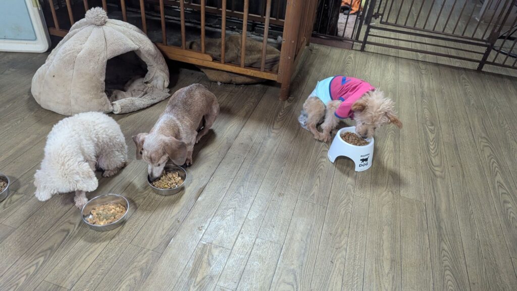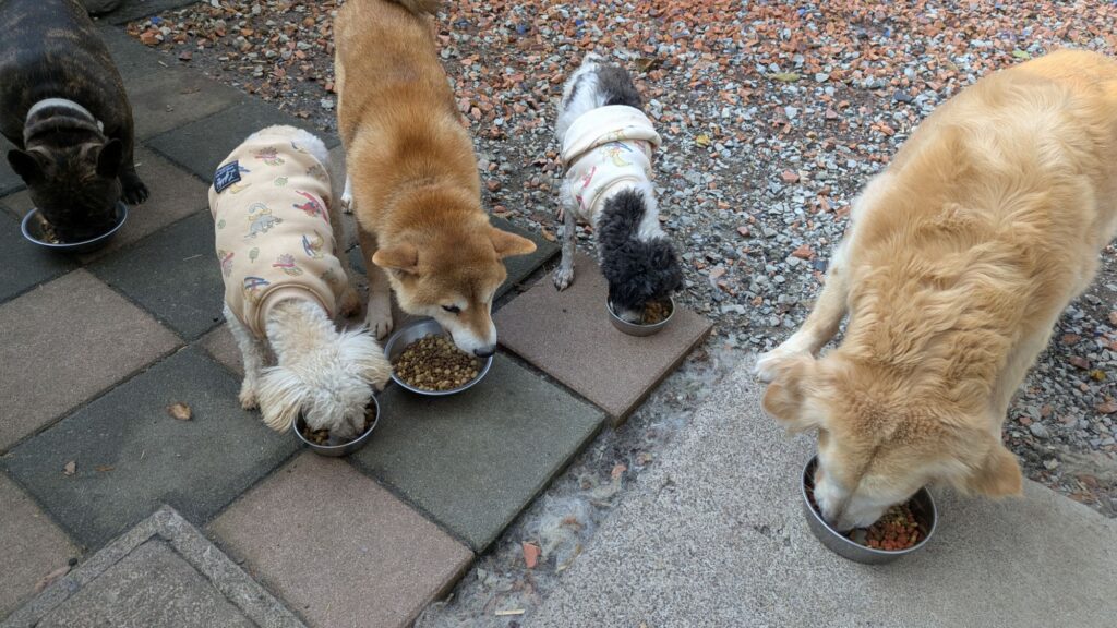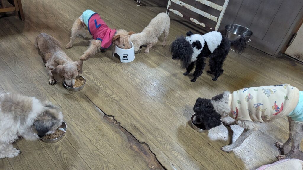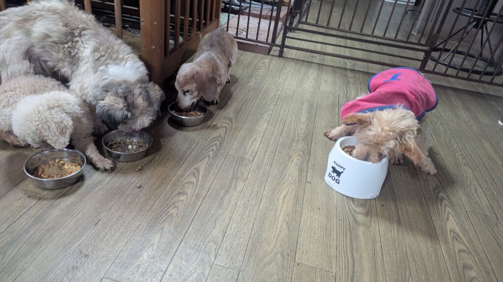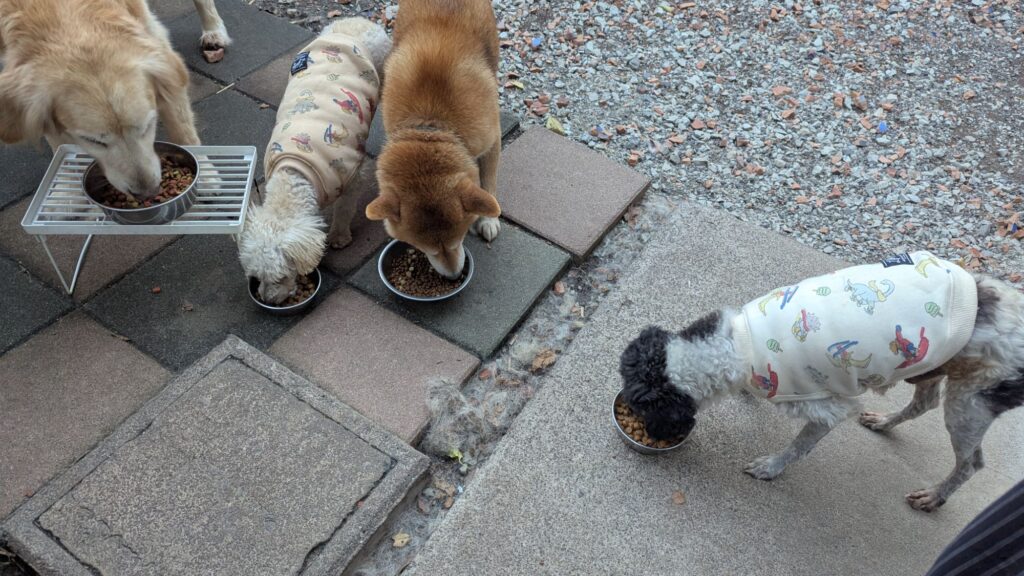 生涯お預かりミックスサスケくん、柴犬ハルちゃん、マルプーらんまるくん、ボルゾイはなこちゃんしっかり完食しました。
