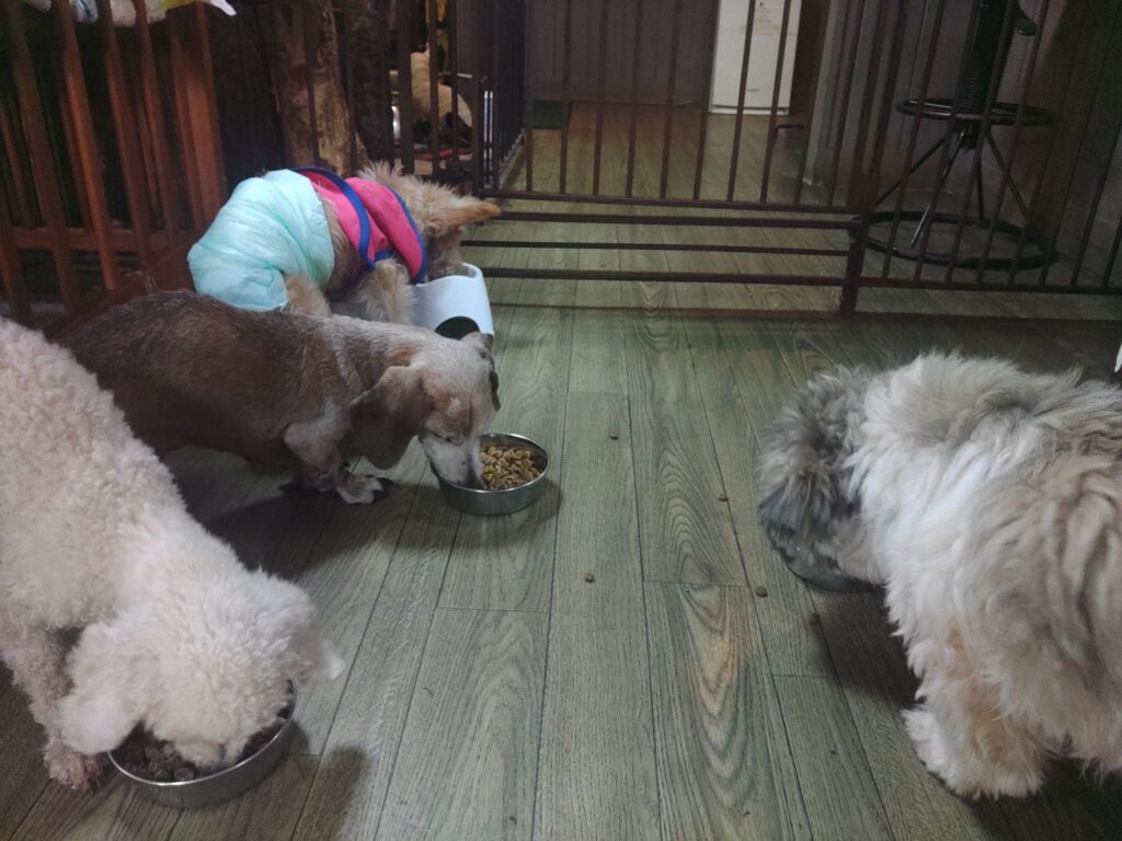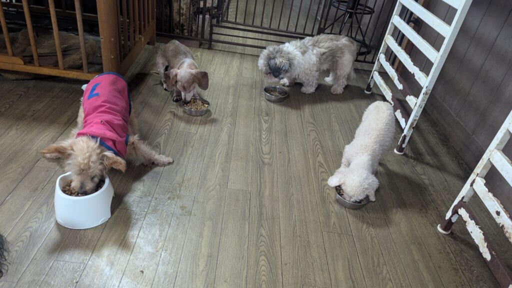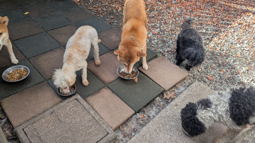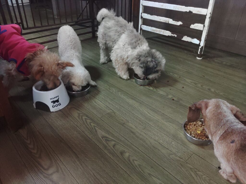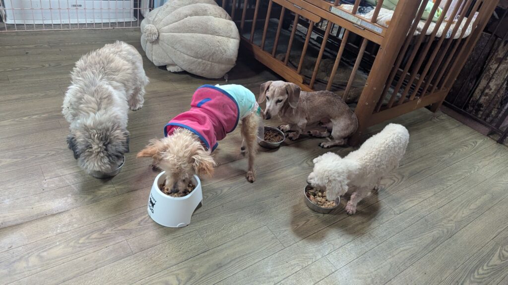 生涯お預かりミックスサスケくん、柴犬ハルちゃん、マルプーらんまるくん、ボルゾイはなこちゃんしっかり完食しました。