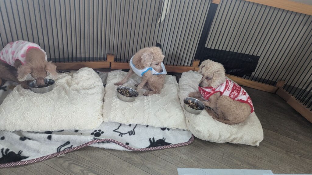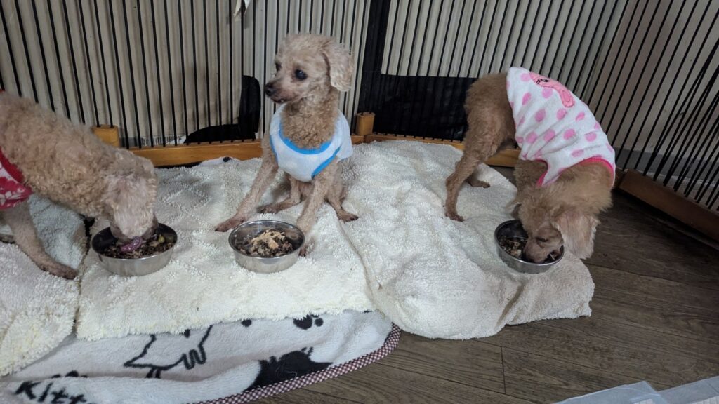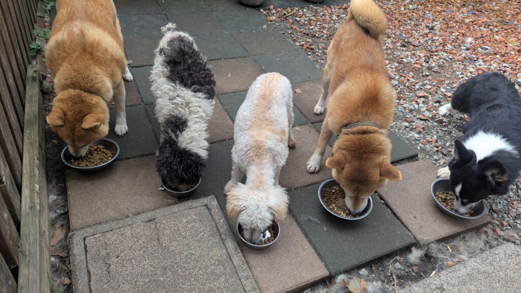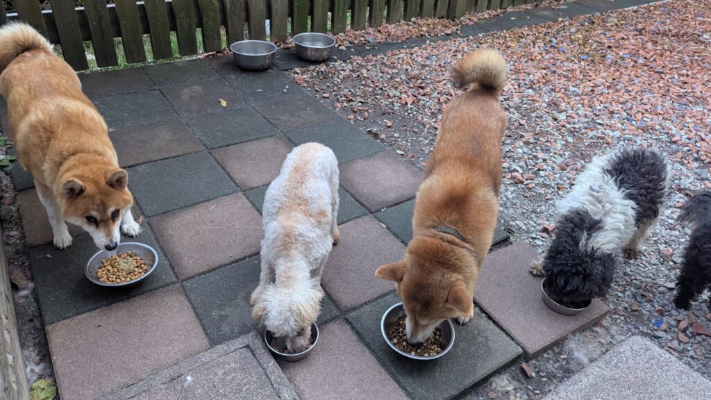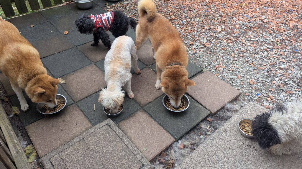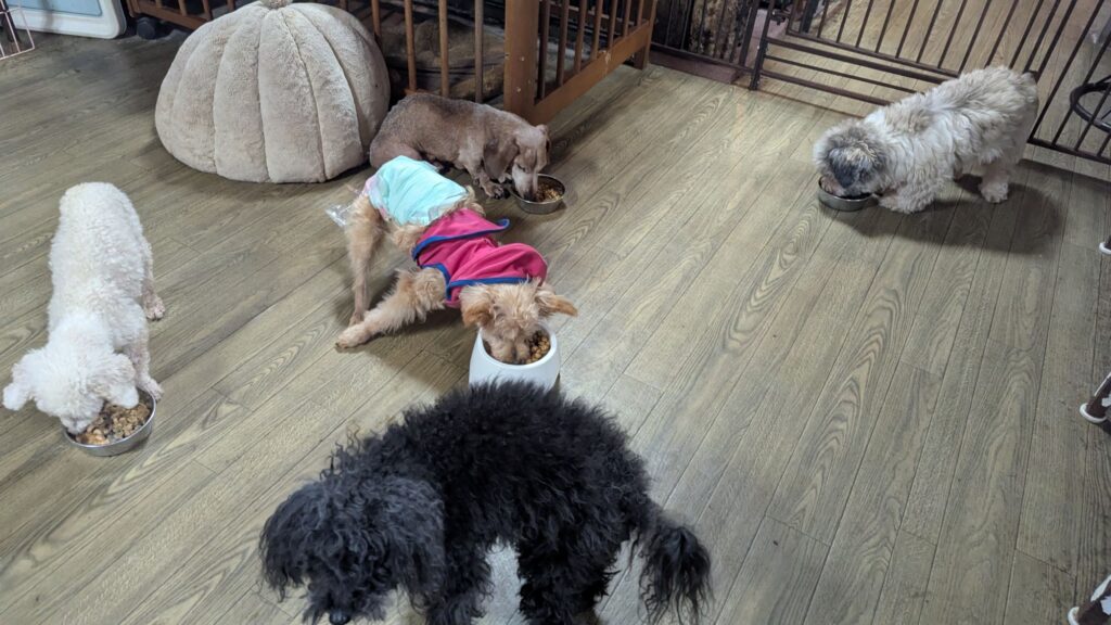 生涯お預かりミックスサスケくん、柴犬ハルちゃん、マルプーらんまるくん、ボルゾイはなこちゃんしっかり完食しました。