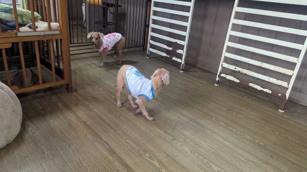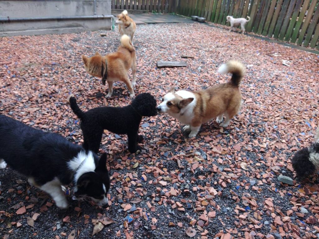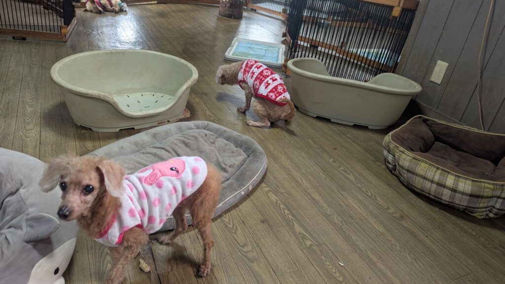 常連さんのトイプーロクくんとコーギーハチくんがチェックインしました。