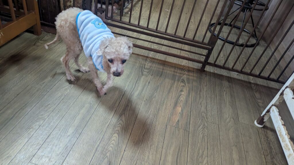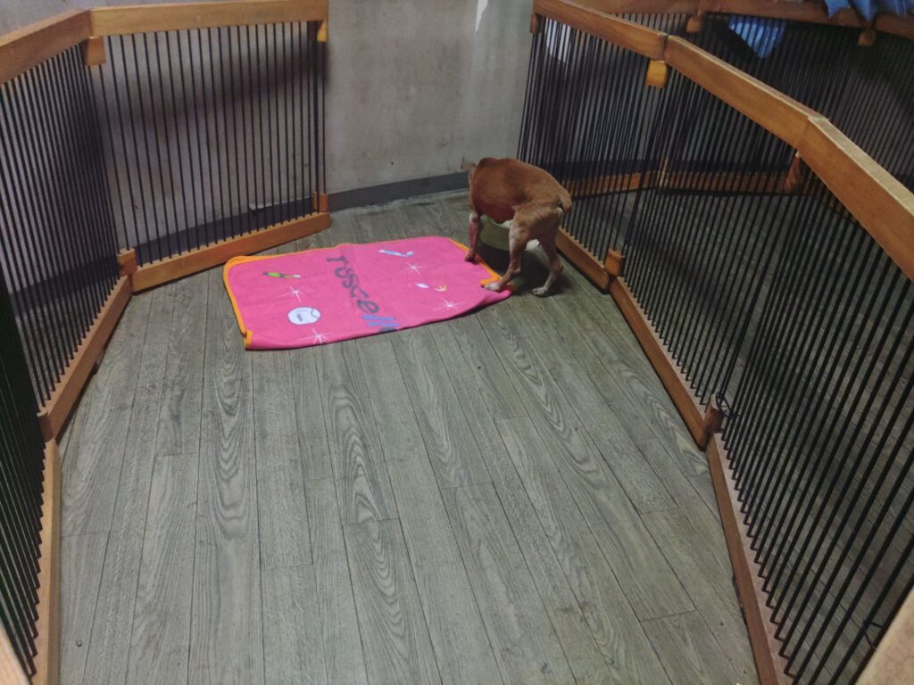 サークルに入るなり盛大にオシッコして水をガブガブ飲んで歩き回ってます