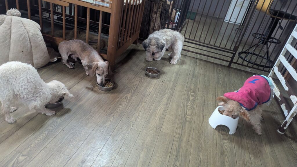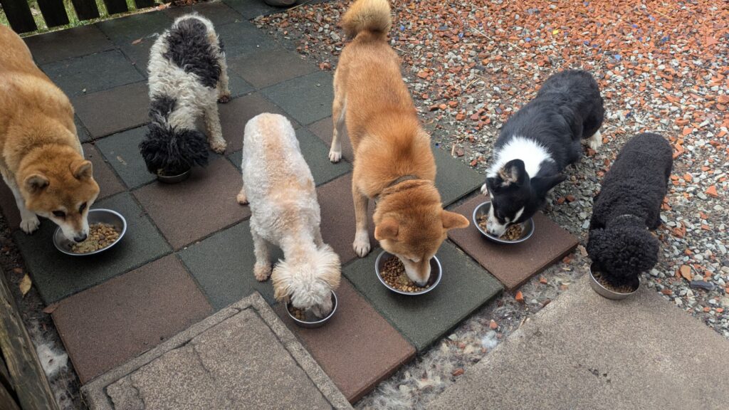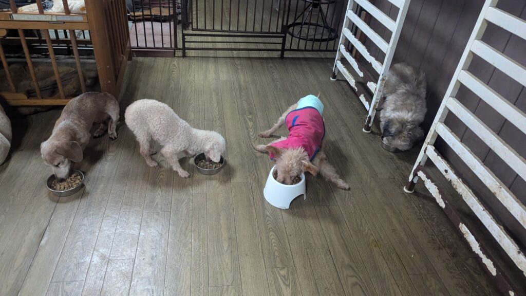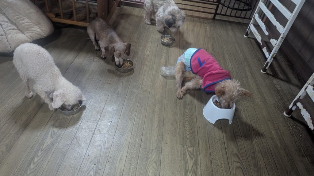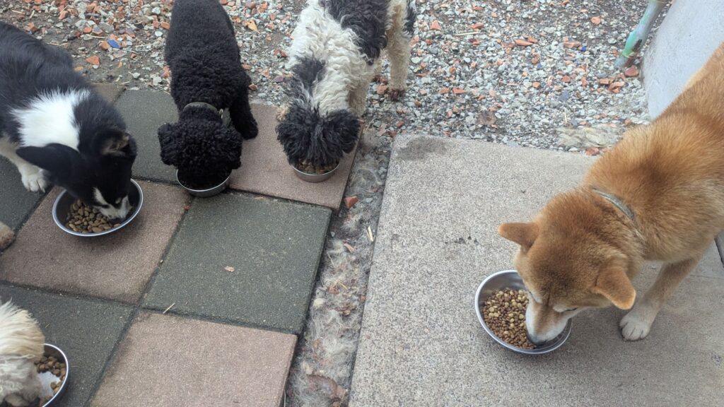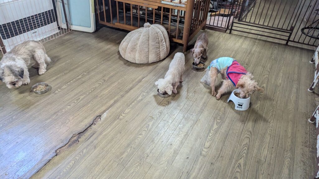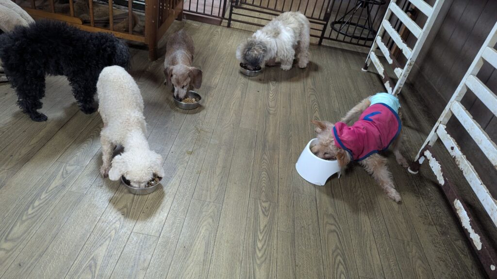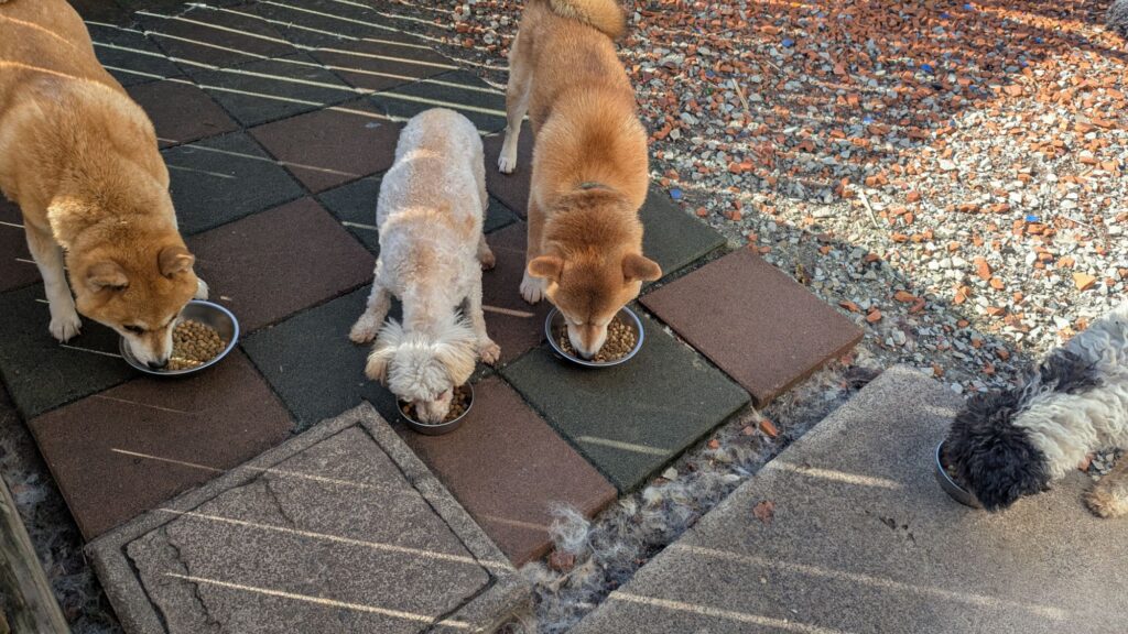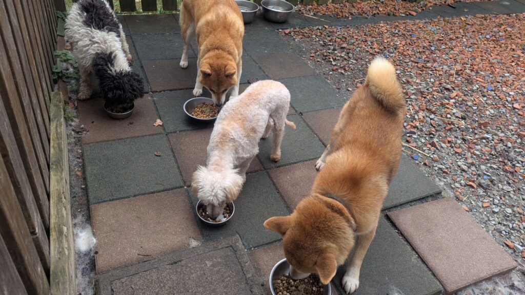 生涯お預かりミックスサスケくん、柴犬ハルちゃん、マルプーらんまるくん、ボルゾイはなこちゃんしっかり完食しました。