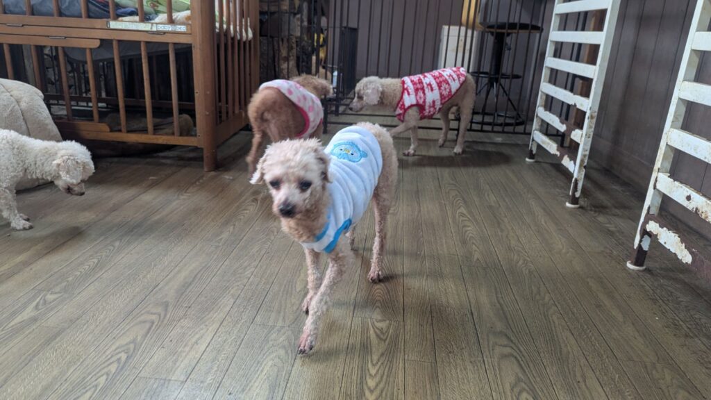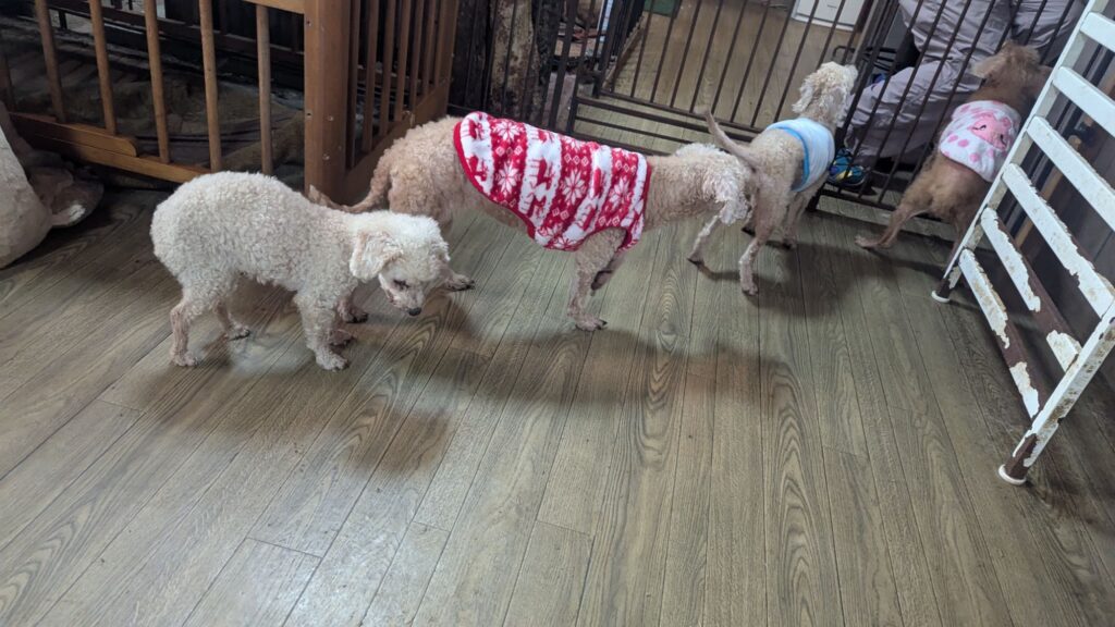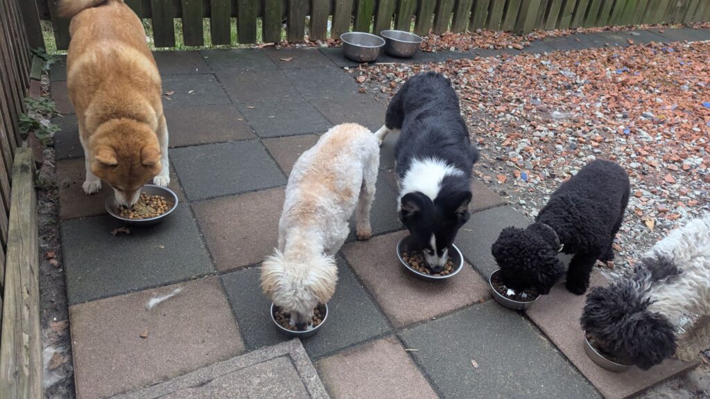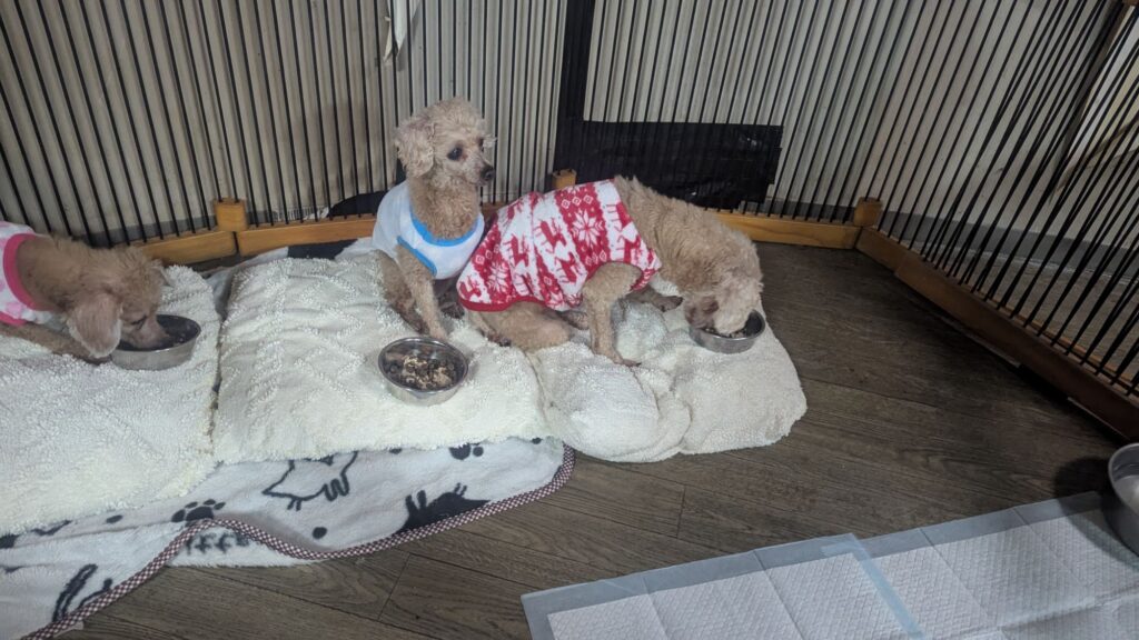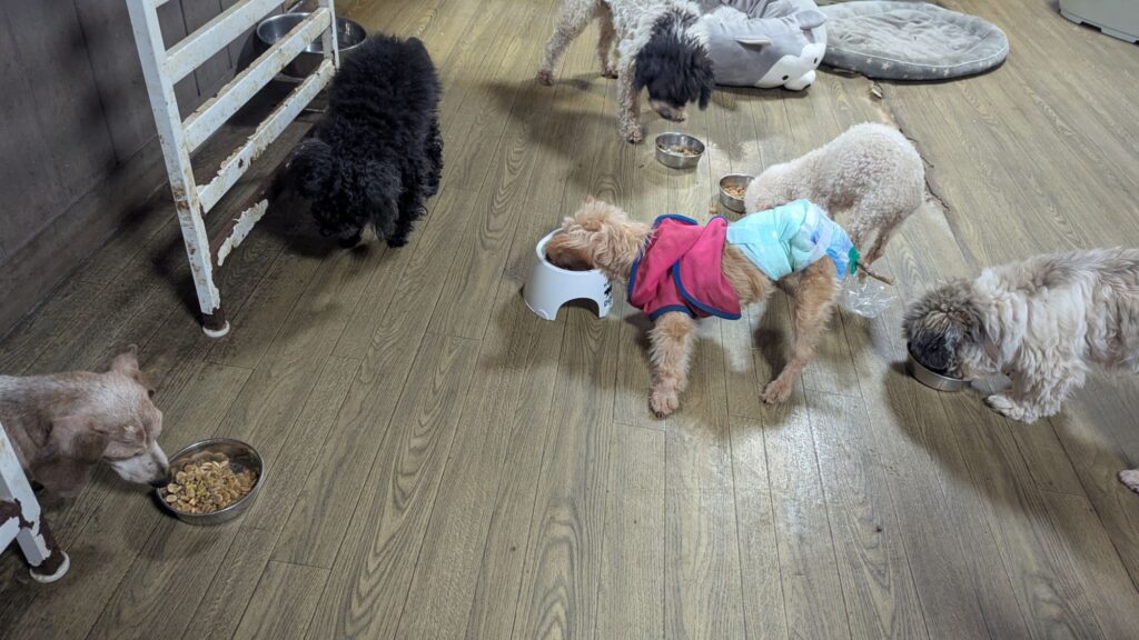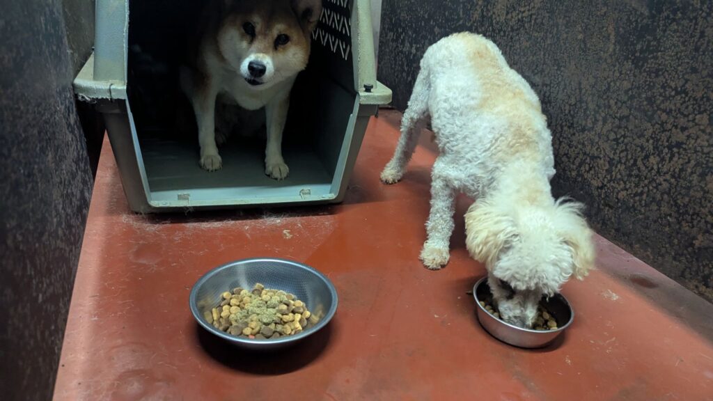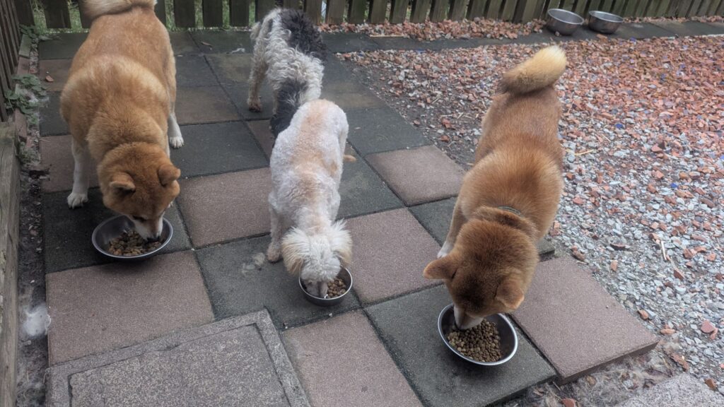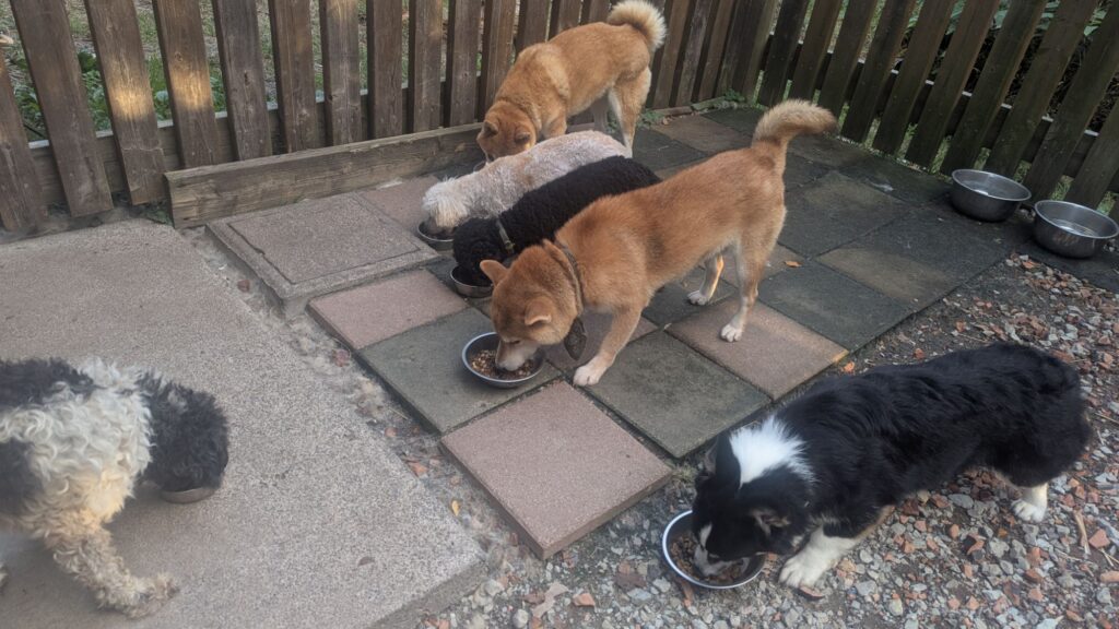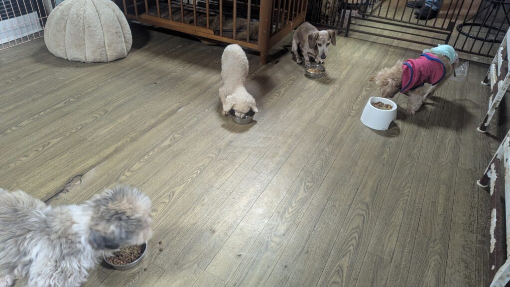 生涯お預かりミックスサスケくん、柴犬ハルちゃん、マルプーらんまるくん、ボルゾイはなこちゃんしっかり完食しました。