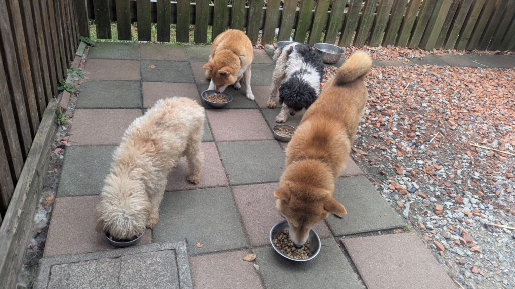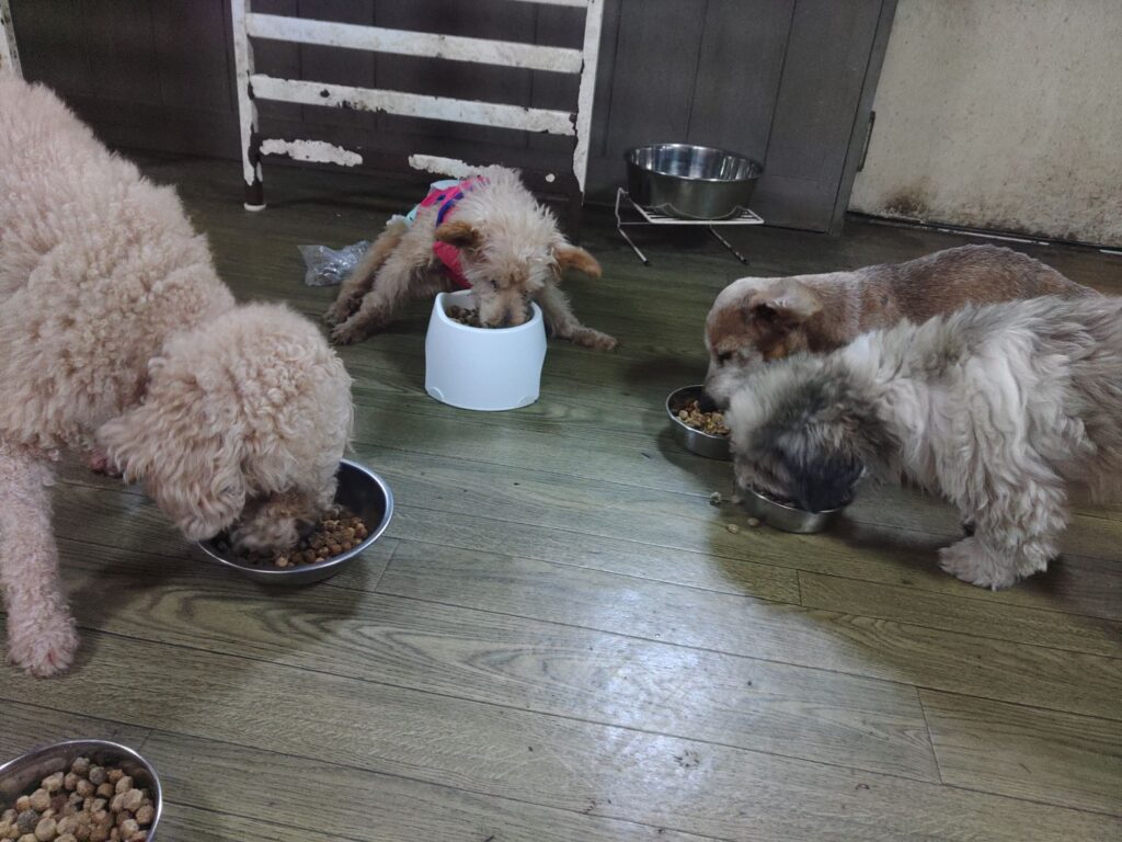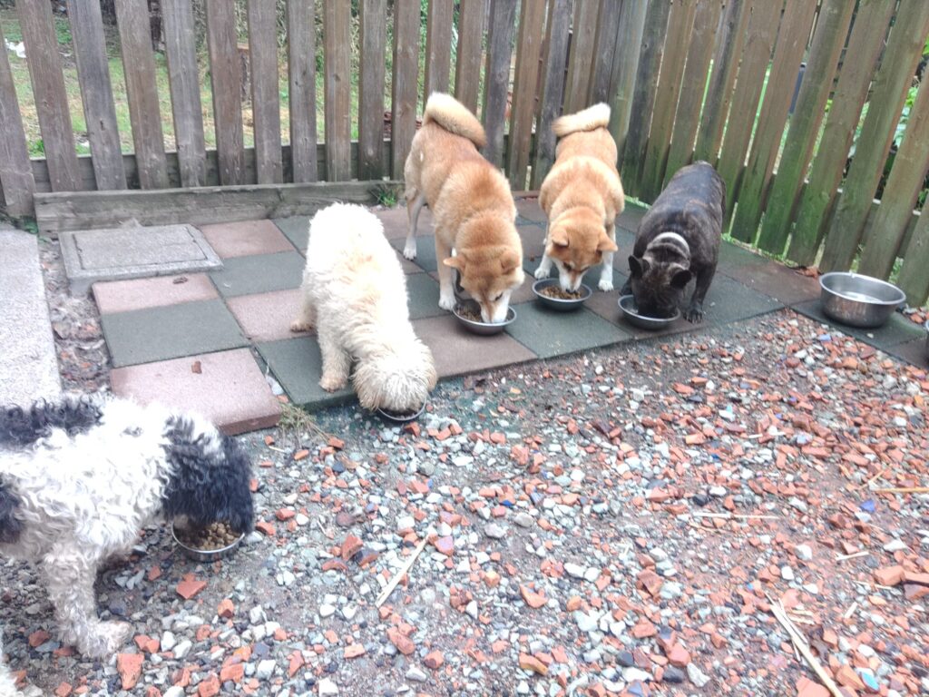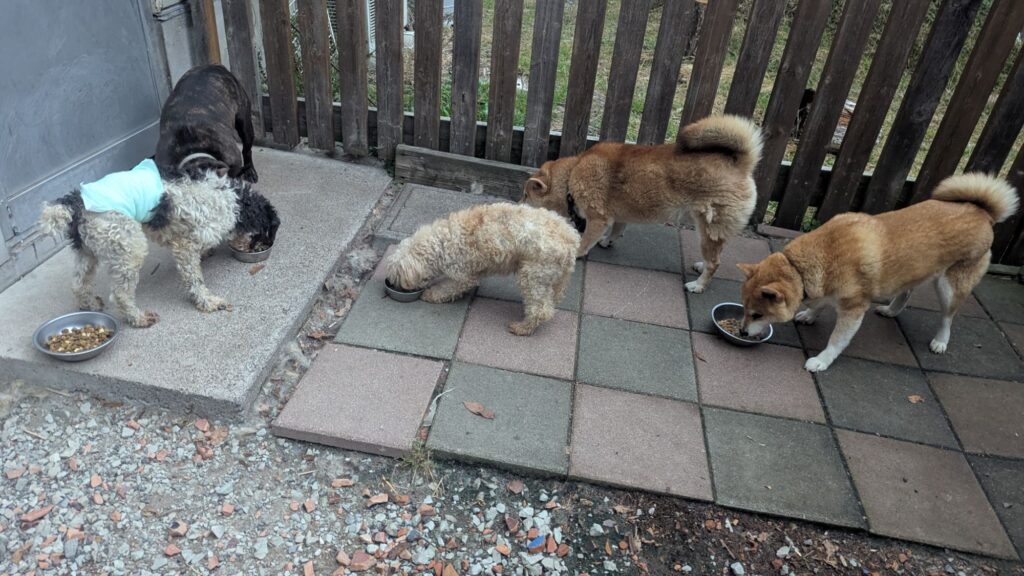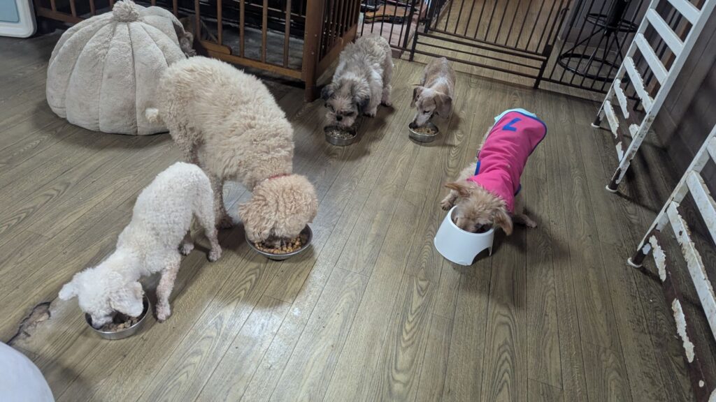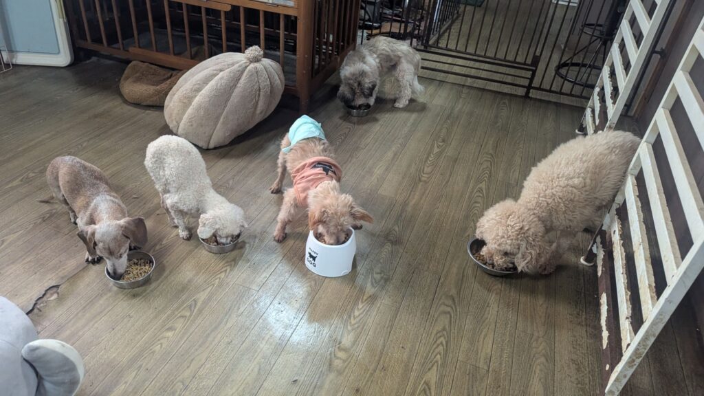 生涯お預かりミックスサスケくん、柴犬ハルちゃん、マルプーらんまるくん、ボルゾイはなこちゃんしっかり完食しました。