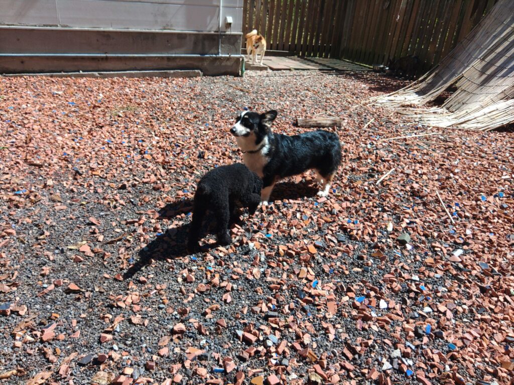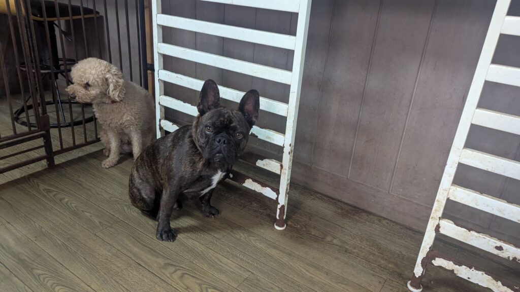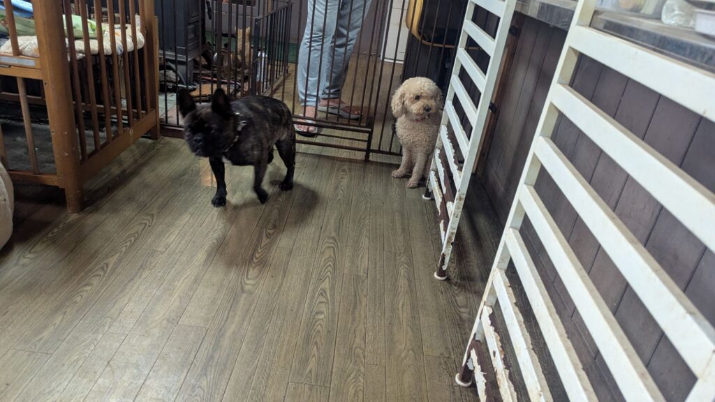常連トイプーのロク君とコーギーのハチ君コンビがチェックインしました