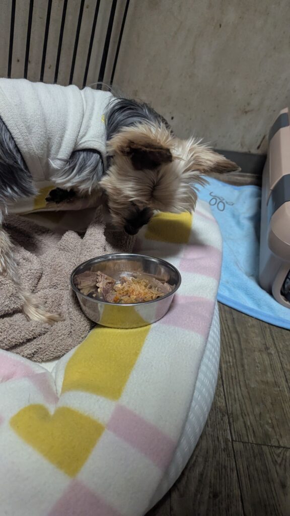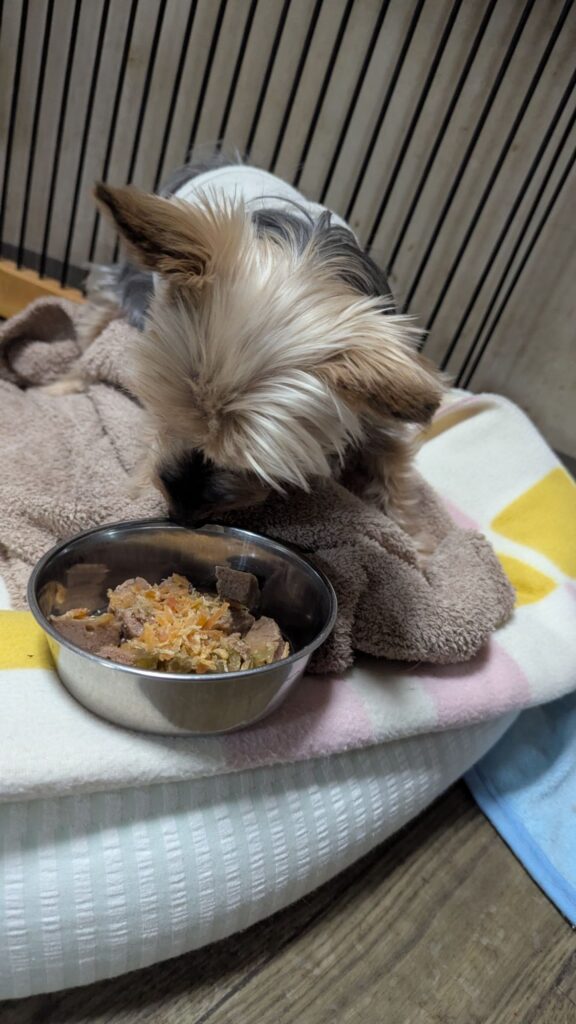 ヨーキーラブちゃん口をつけませんでした。昨晩のは食べてありました。