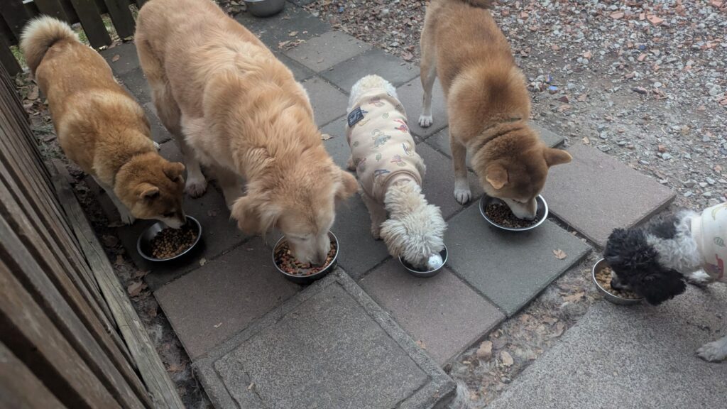 長期お預かりトイプーララくん、ゆずちゃん、ミックスチビちゃん、柴犬リキくん、ゴールデンナオナオちゃんしっかり完食しました。