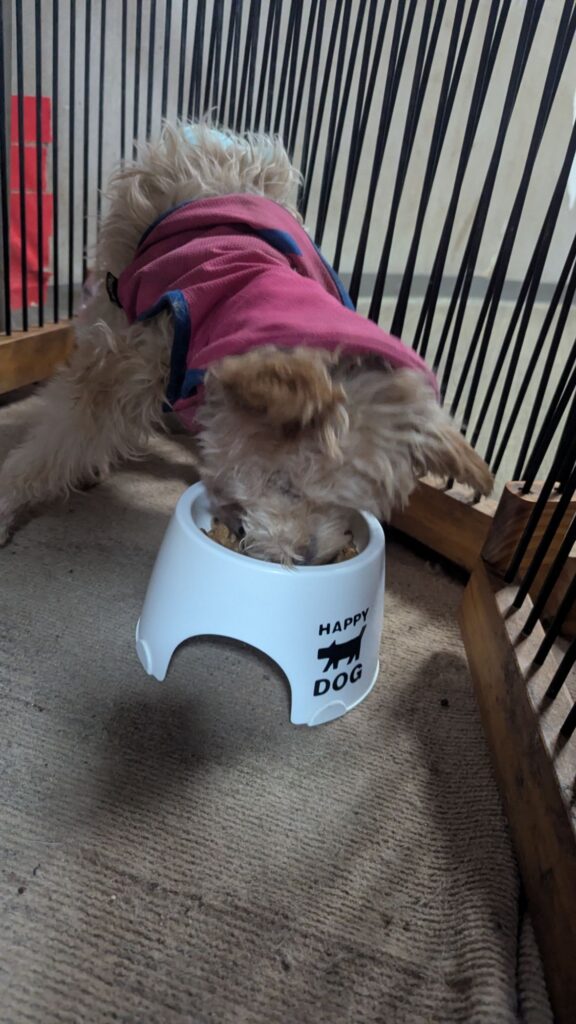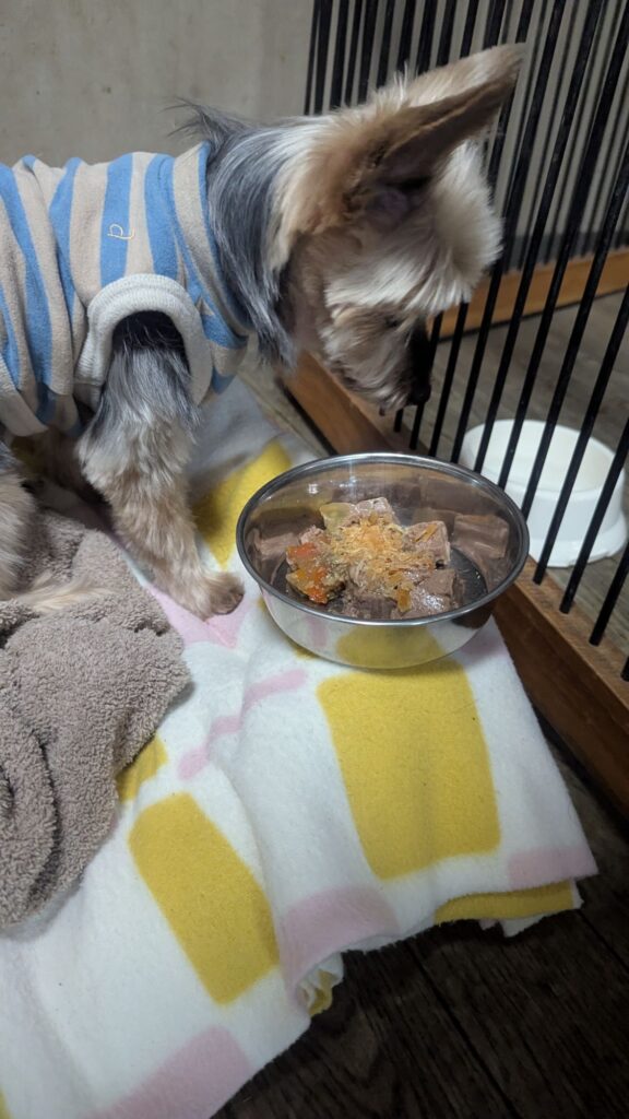 ヨーキーラブちゃん口をつけませんでした。朝のは半分食べてありました。