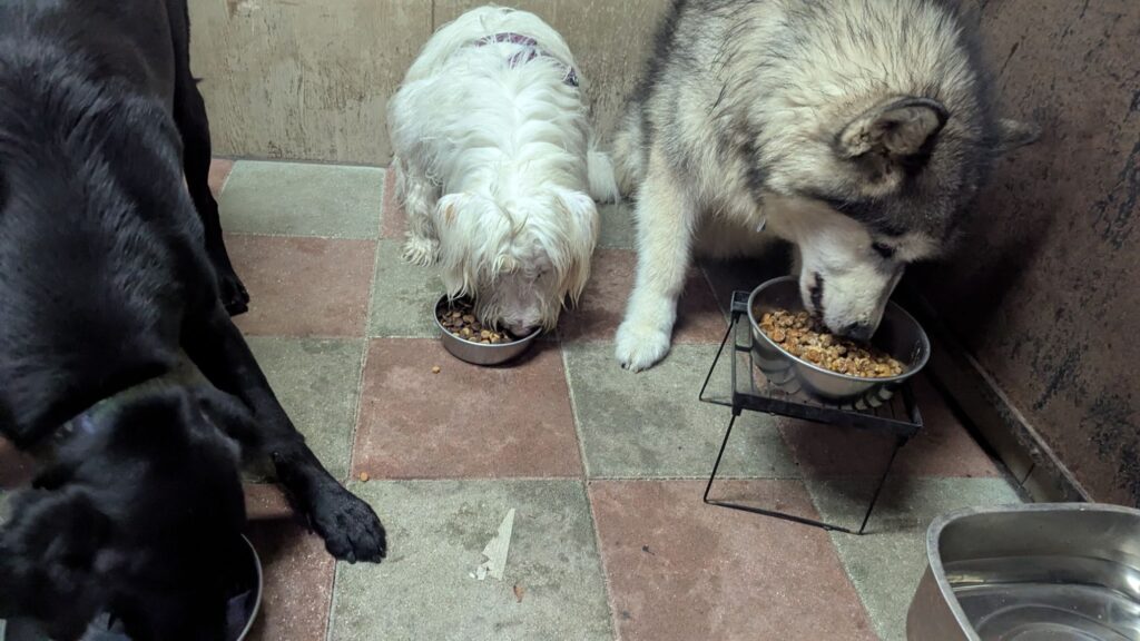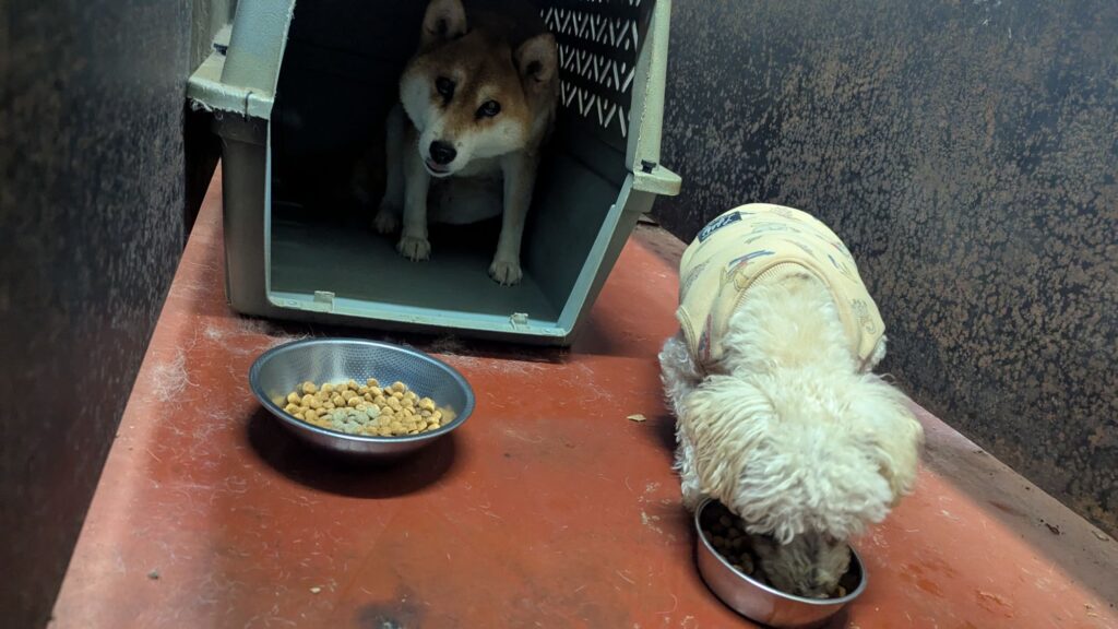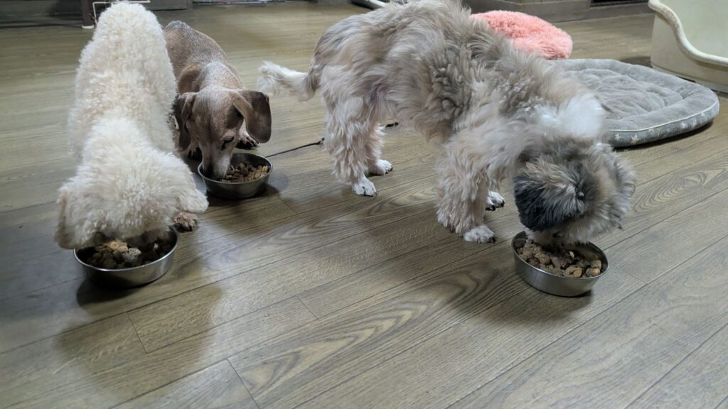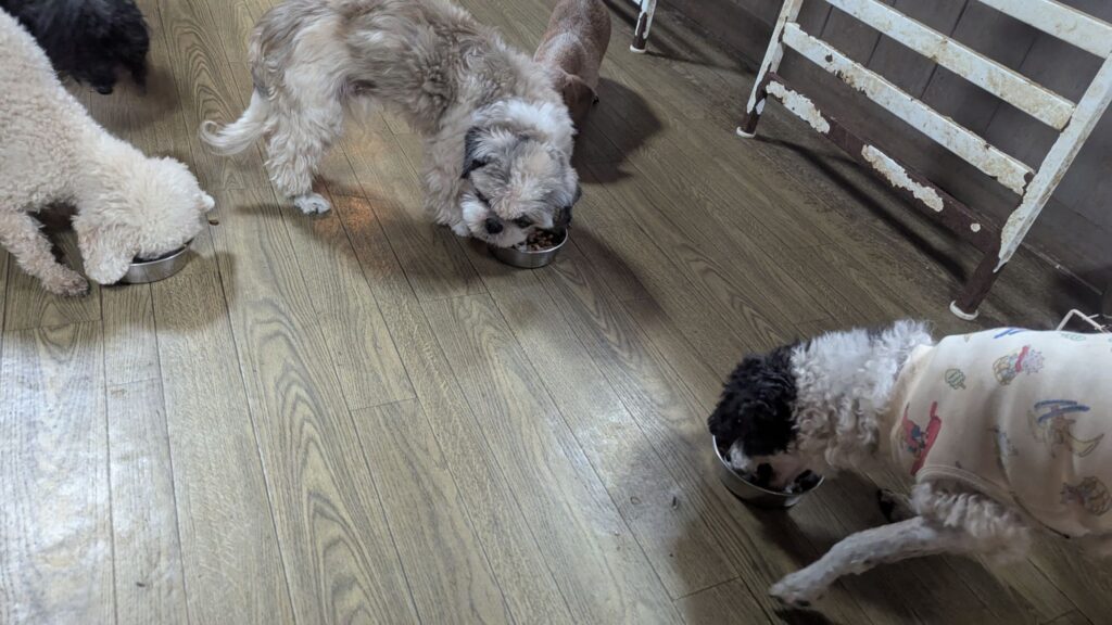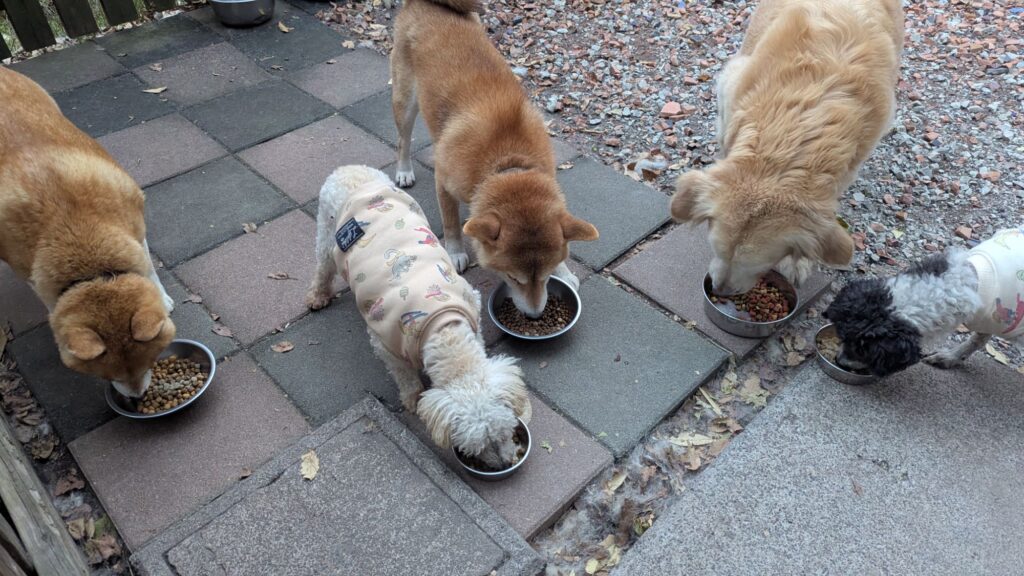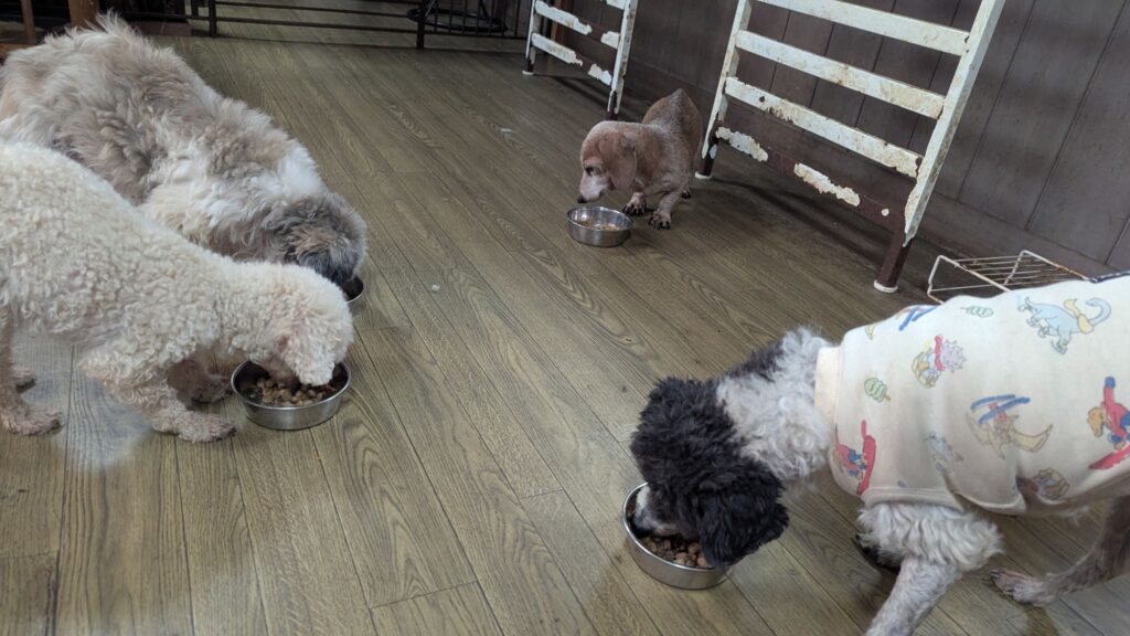 生涯お預かりミックスサスケくん、柴犬ハルちゃん、マルプーらんまるくん、ボルゾイはなこちゃんしっかり完食しました。