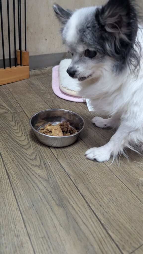 チワワノアちゃん口をつけませんでした。昨晩のは食べてありました。