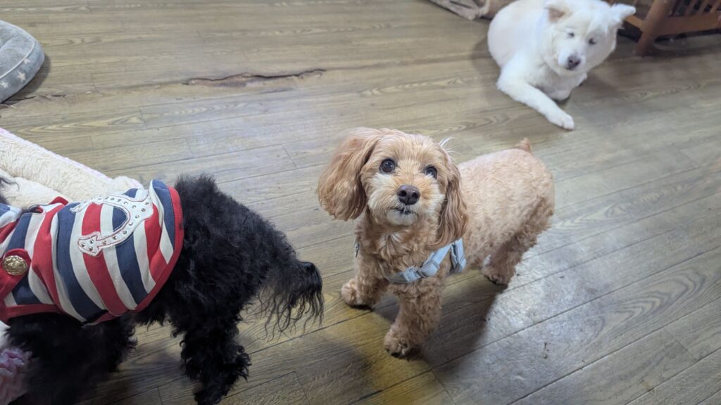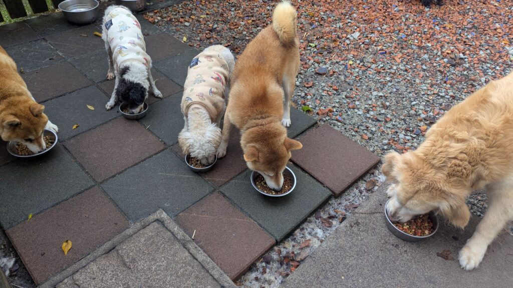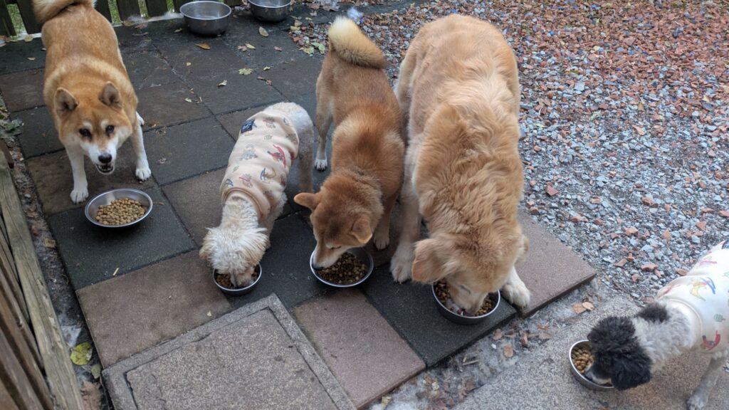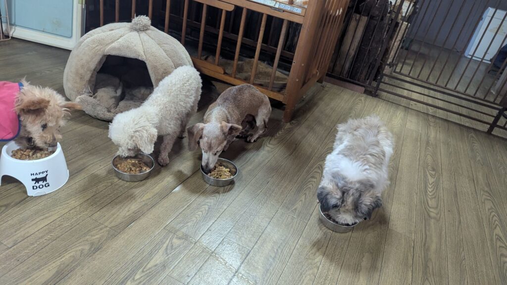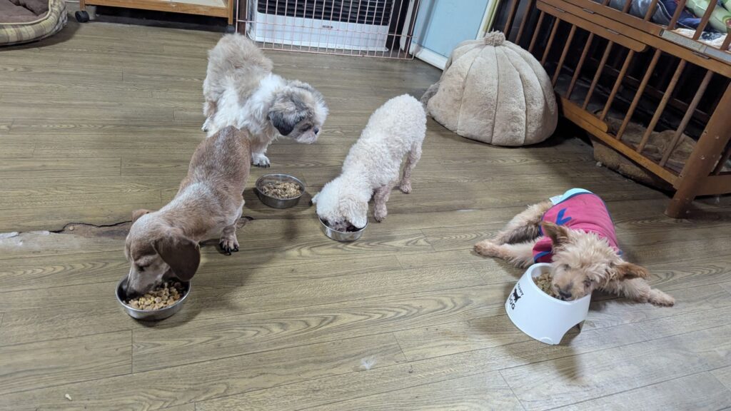 生涯お預かりミックスサスケくん、柴犬ハルちゃん、マルプーらんまるくん、ボルゾイはなこちゃんしっかり完食しました。