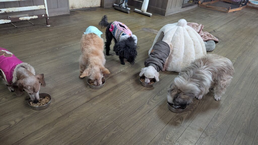 生涯お預かりミックスサスケくん、柴犬ハルちゃん、マルプーらんまるくん、ボルゾイはなこちゃんしっかり完食しました。