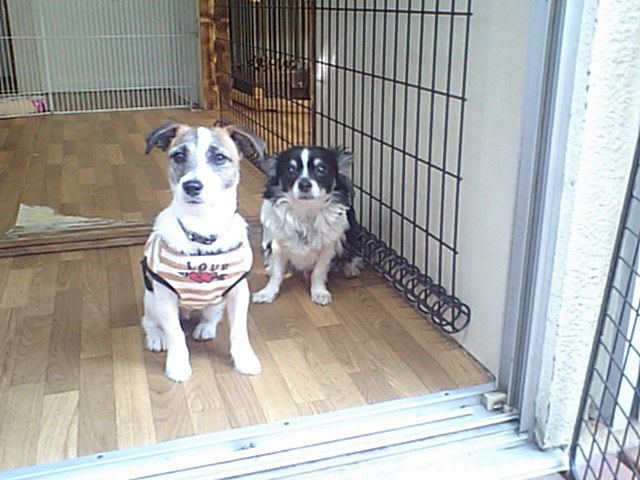 お兄ちゃんJRTはデッキも元気いっぱいに駆け回ってるんですが、弟君とチワワ君はデッキは怖いらしい。
