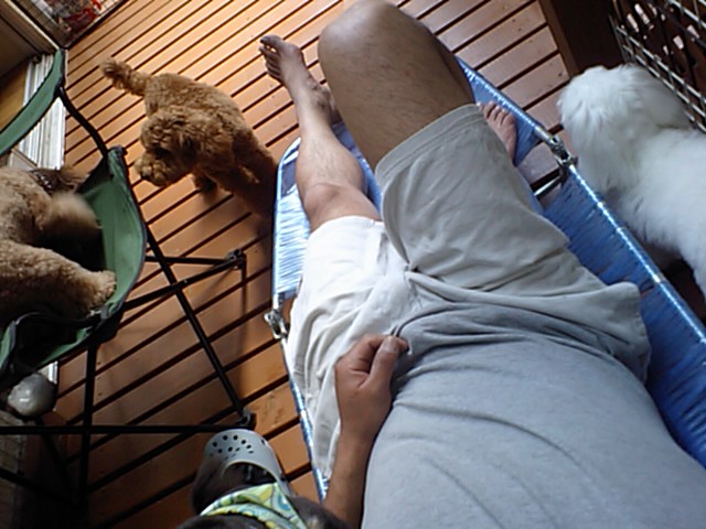 早くもマルチーズちゃんがお腹の上を占拠しました。