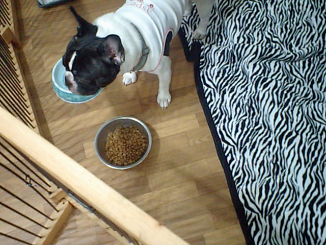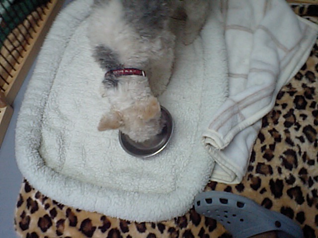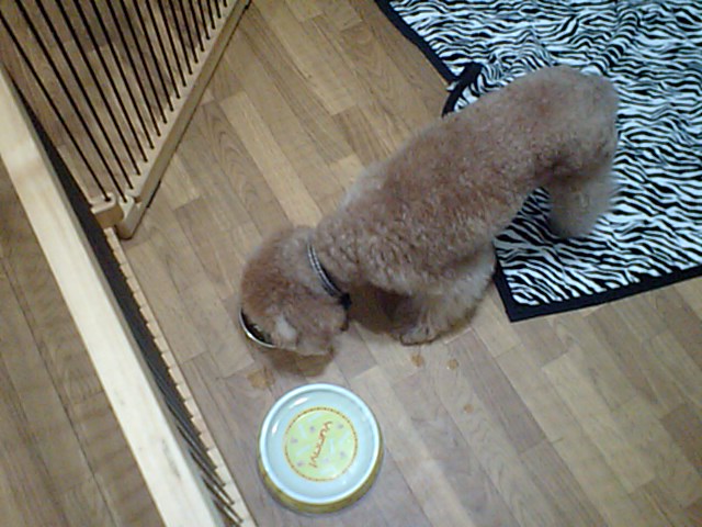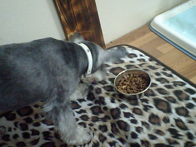 シュナウザーちゃんは最初は食べなかったのですが、優しく声をかけて、撫でていたら食べ始めました。