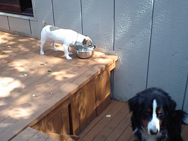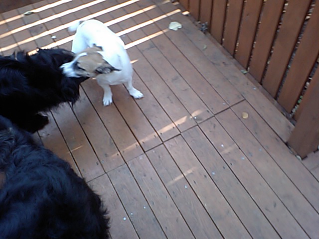 勝手知ったる大型犬エリアで、バーニーズとなんちゃってフラットを蹴散らしてバタバタしてます。