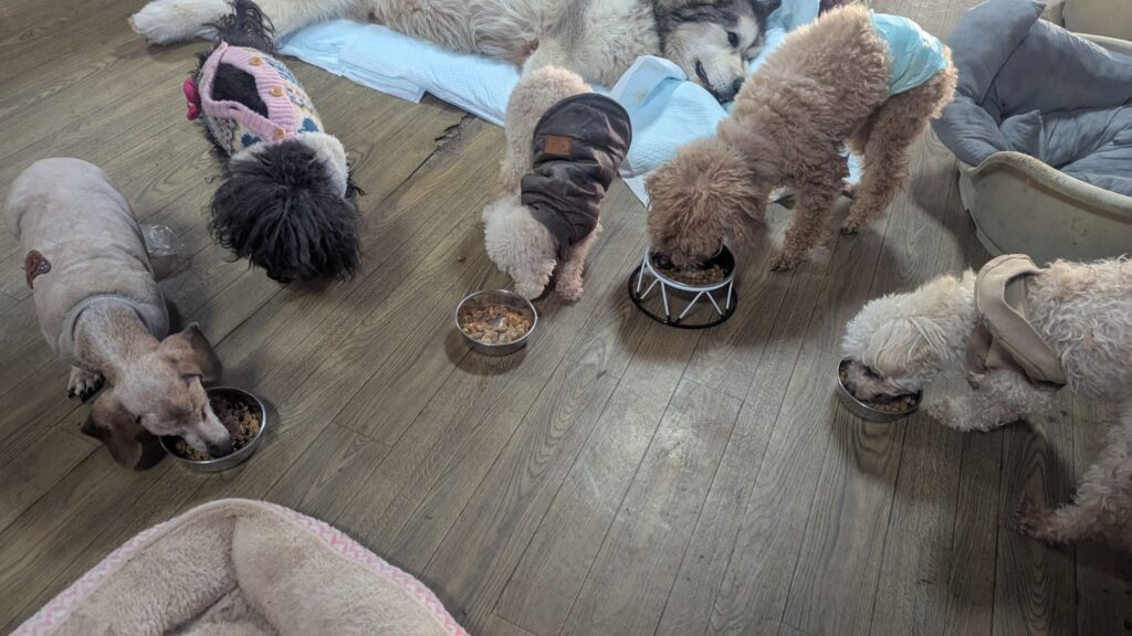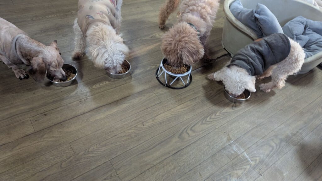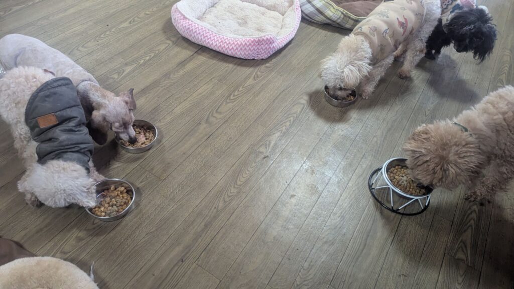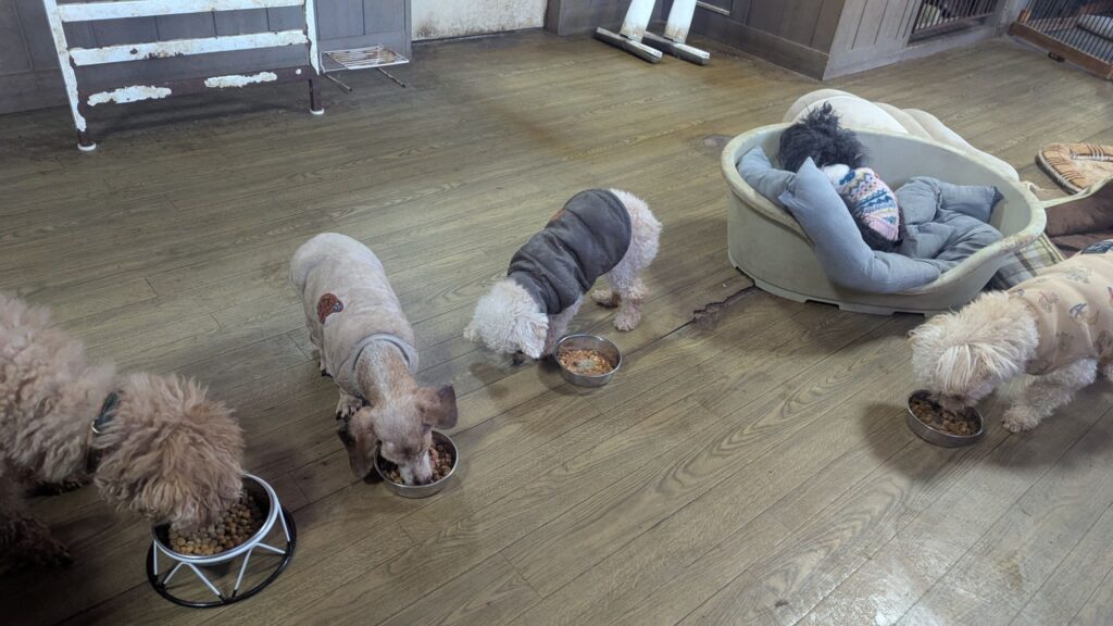 長期お預かりトイプーララくん、ゆずちゃん、ミックスチビちゃん、柴犬リキくん、さくらちゃん、プードルココちゃんしっかり完食しました。