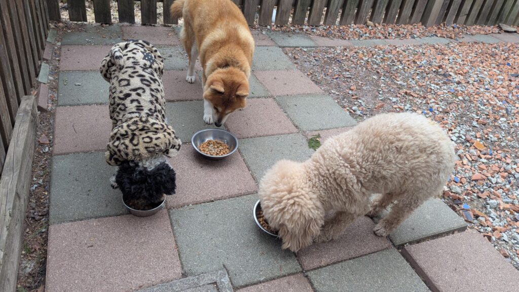 生涯預かり柴犬ハルちゃん、マルプーらんまるくん、ボルゾイはなこちゃん、ダックスグランくん、ミックスサーフくん、メグちゃん、トイプーコタローくん、ゴールデンきなこちゃんしっかり完食しました。