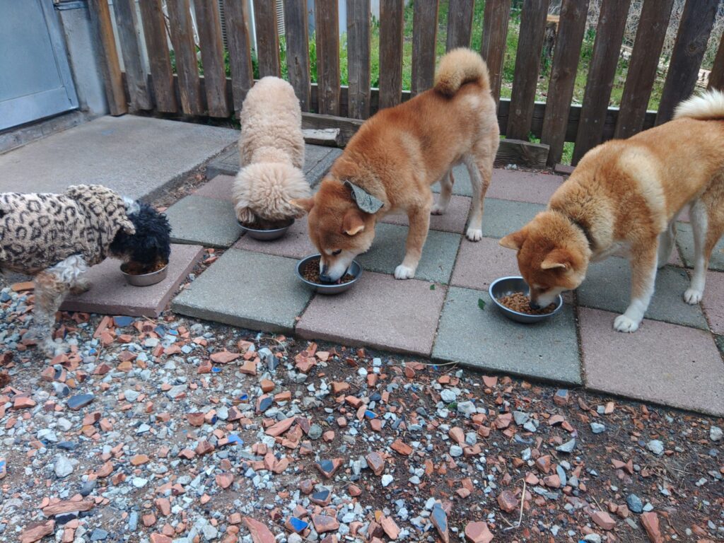 生涯お預かり柴犬ハルちゃん、マルプーらんまるくん、ボルゾイはなこちゃん、ミックスサーフくん、メグちゃん、トイプーコタローくん、ゴールデンきなこちゃん、コーギー小松くんしっかり完食しました。