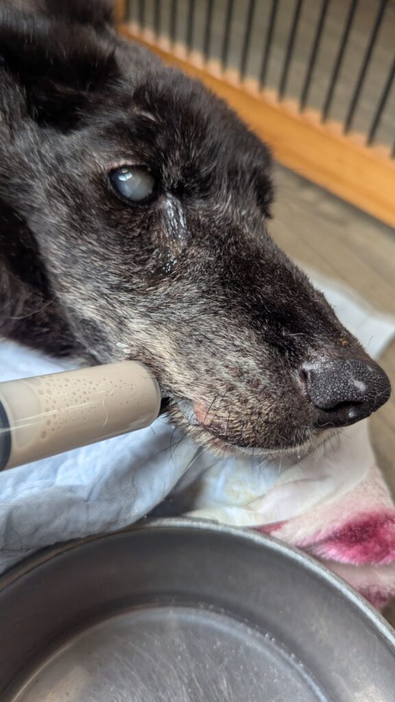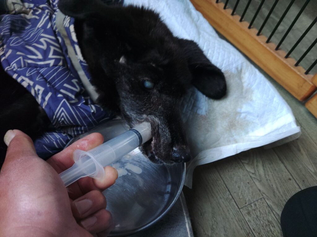 ミックスちびちゃんは口が開かなくて流動食を飲ませました