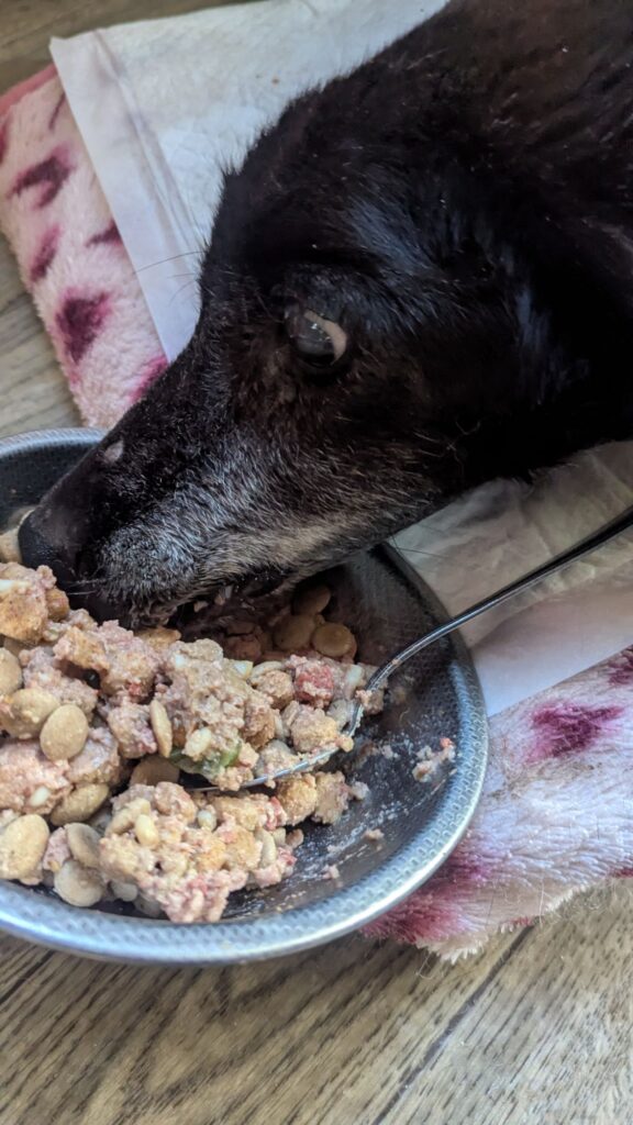 ミックスチビちゃんとダックスグランくんは流動食を飲みました。