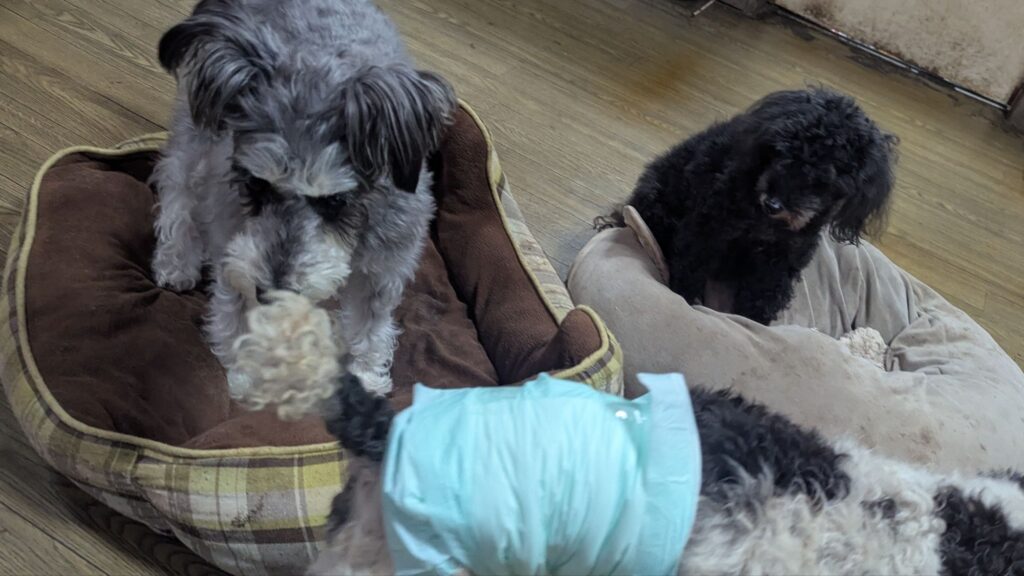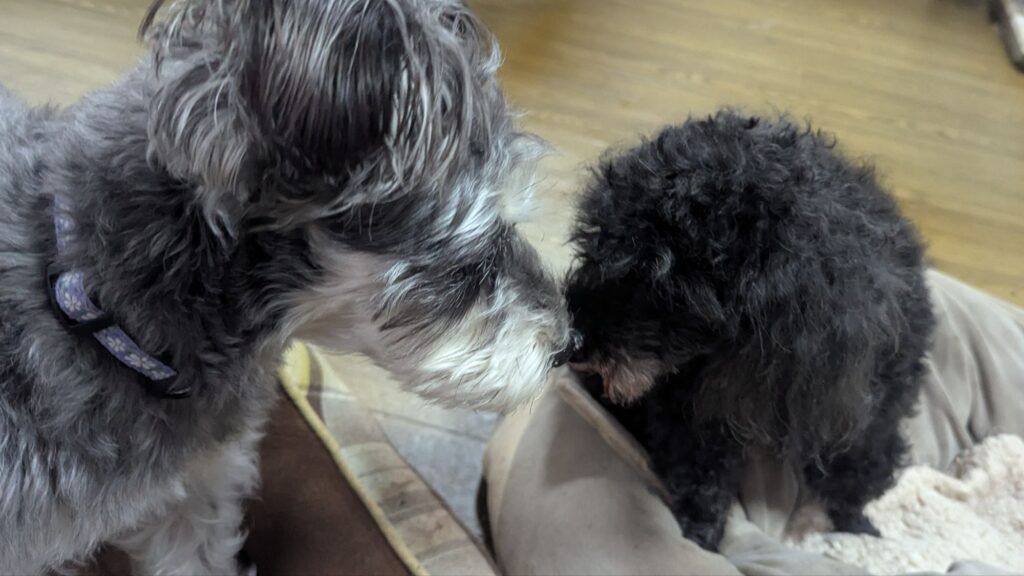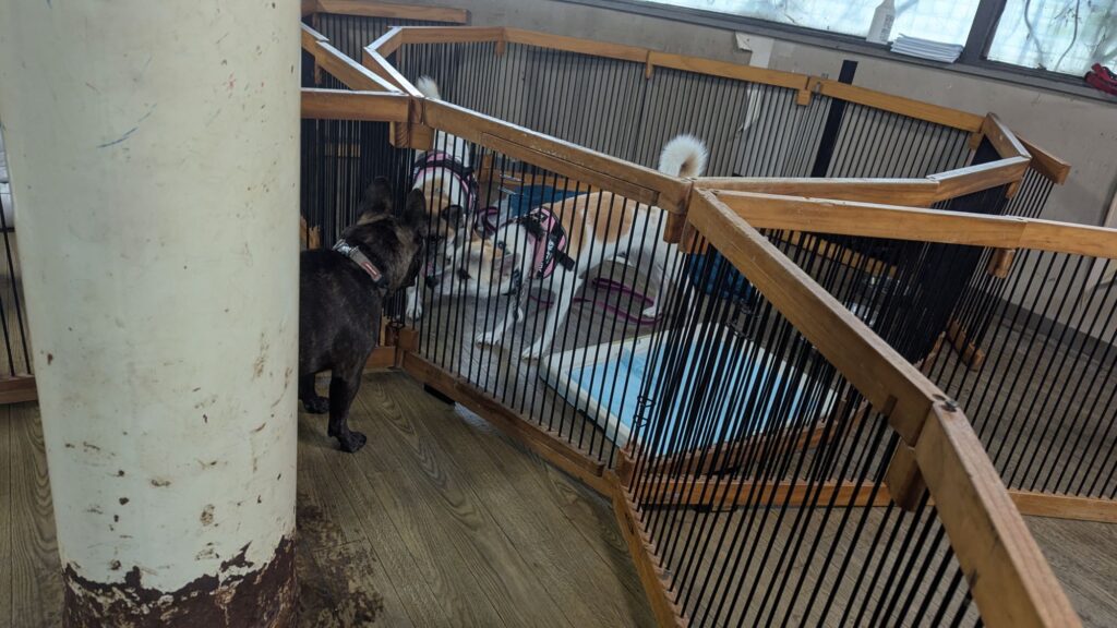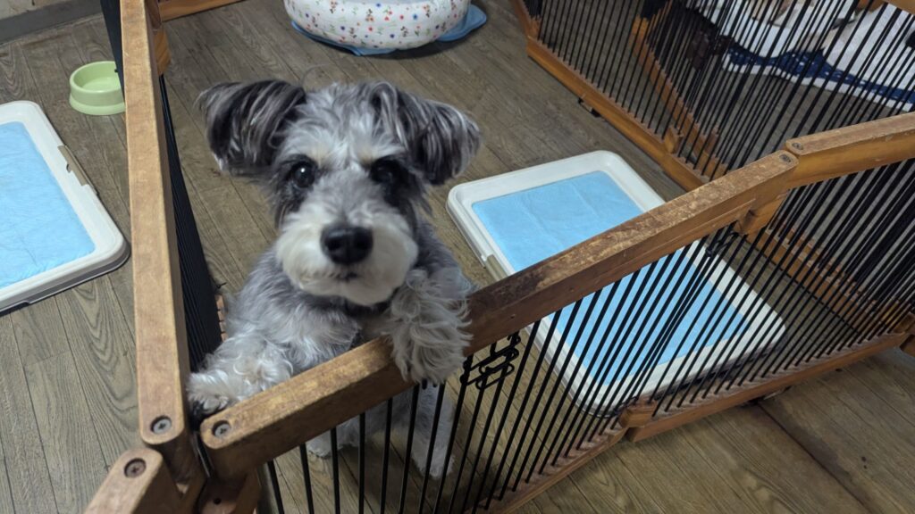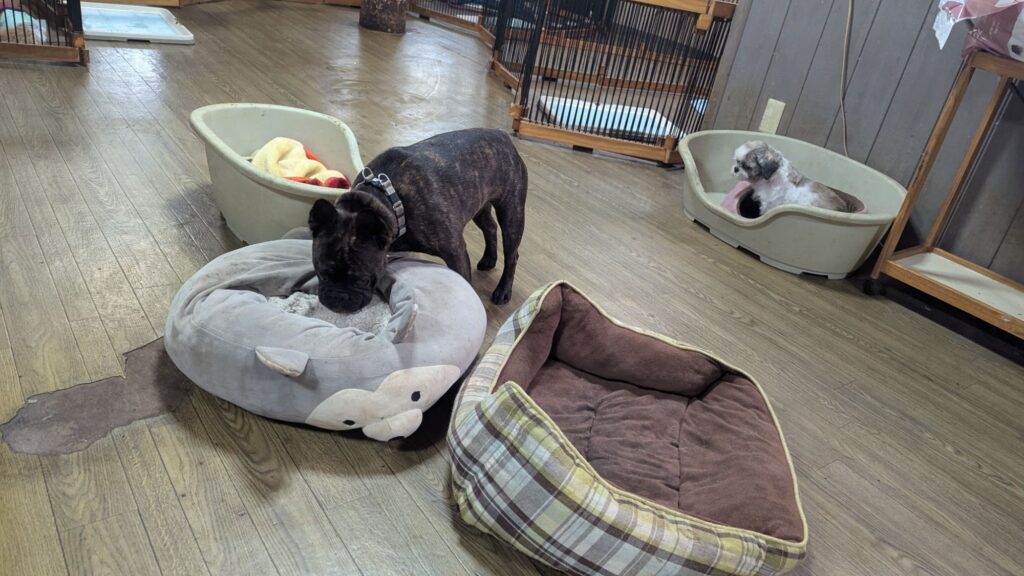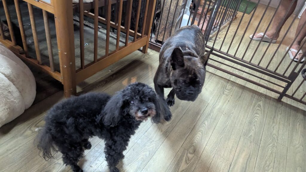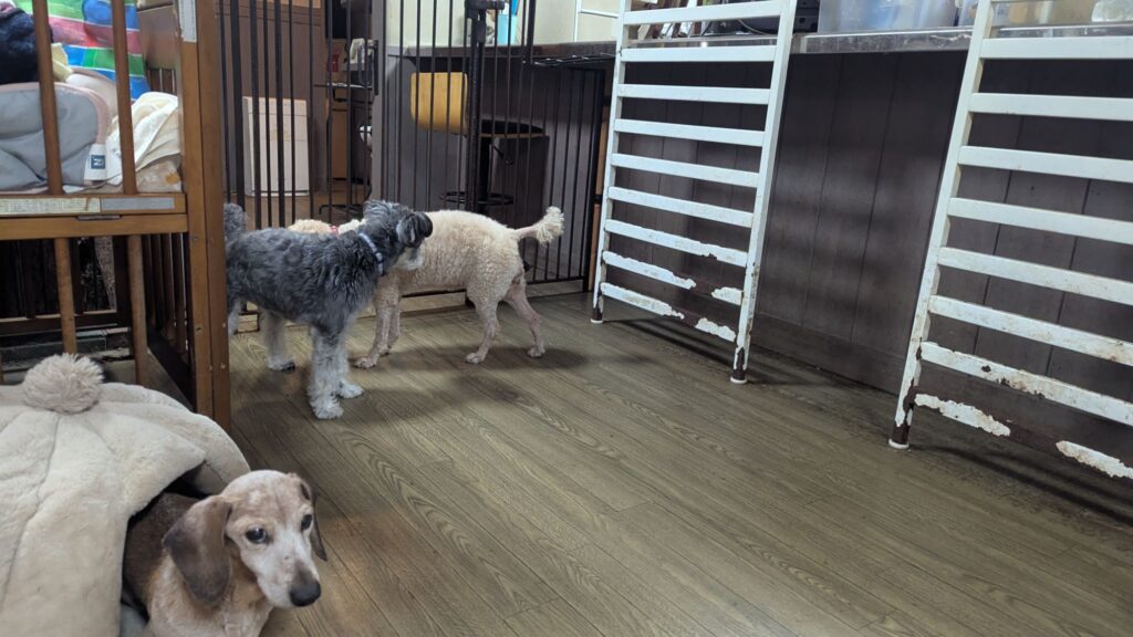 常連さんのトイプーノワールくんがチェックインしました。サークルが苦手なノワールくん。すぐに出てみんなと挨拶しています。