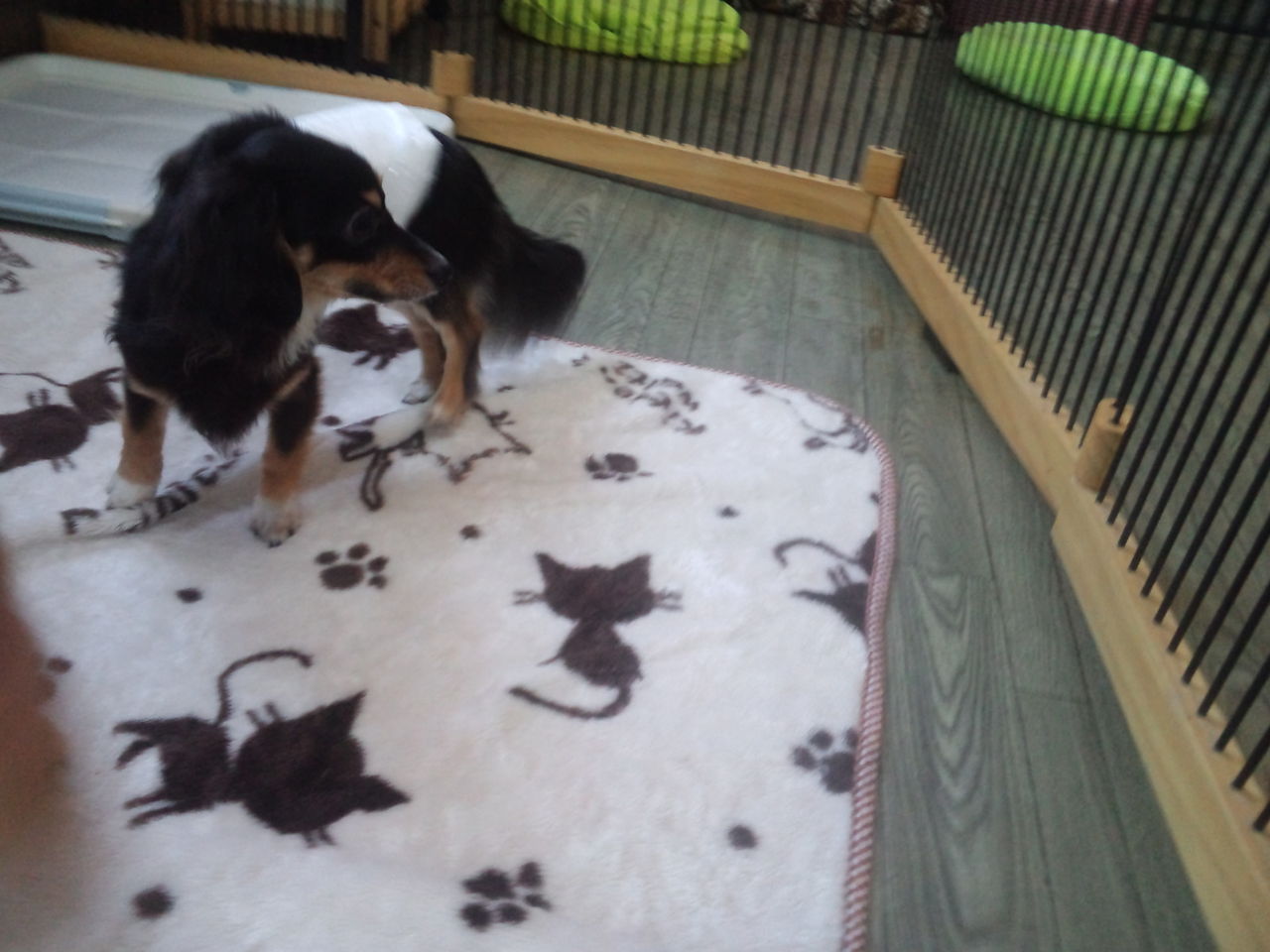 すぐにサークルから出て、控え目にみんなにご挨拶してます。ワンコ達とも大丈夫みたいです。
