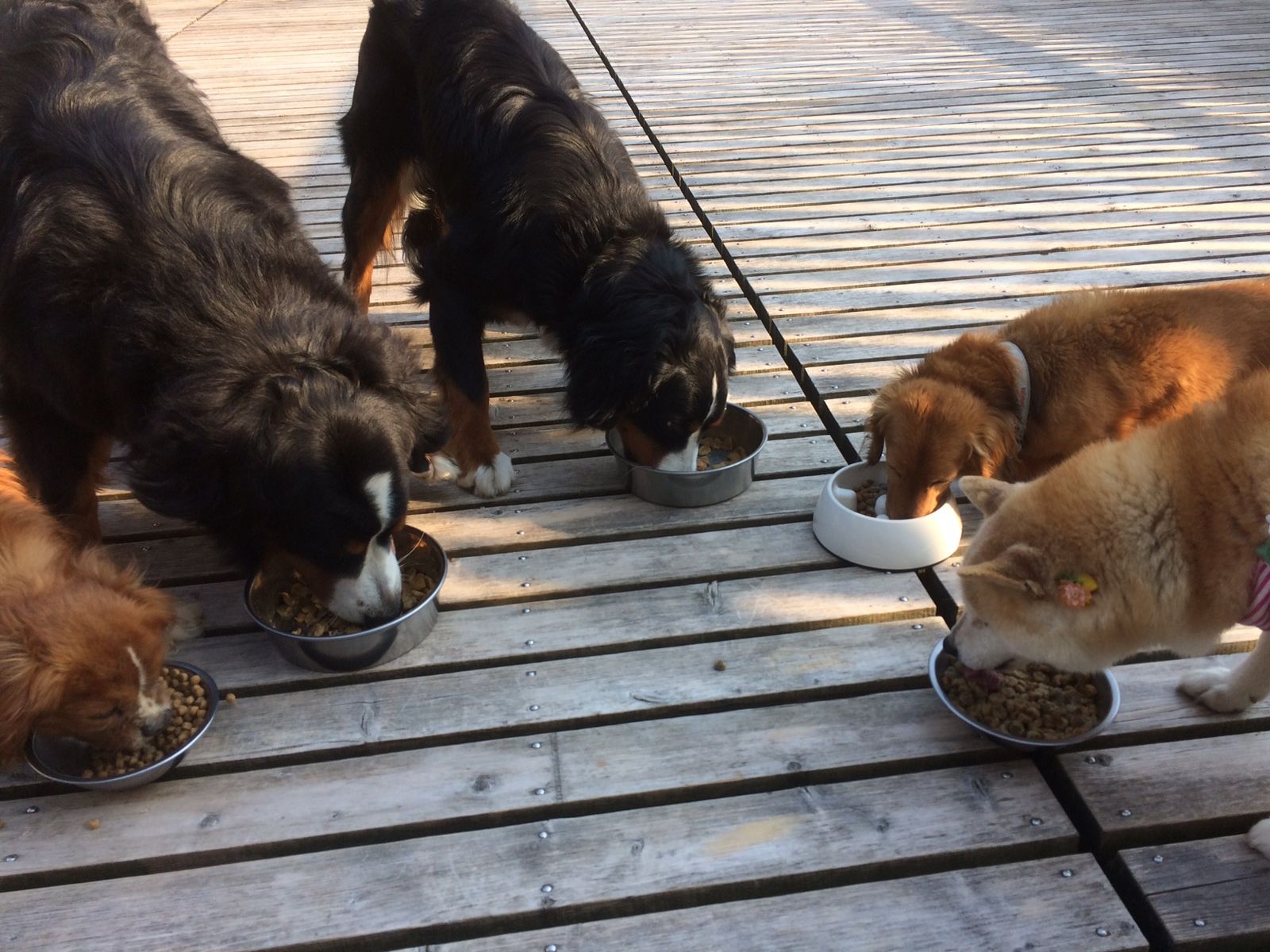 バーニーズ親子のシンディちゃんとリンクくん、みんなと仲良く揃って、しっかり完食しました。