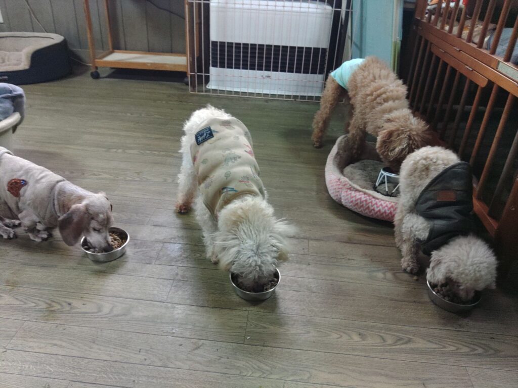 長期お預かりトイプーララくん、ゆずちゃん、ミックスチビちゃん、柴犬リキくん、さくらちゃん、プードルココちゃんしっかり完食しました。