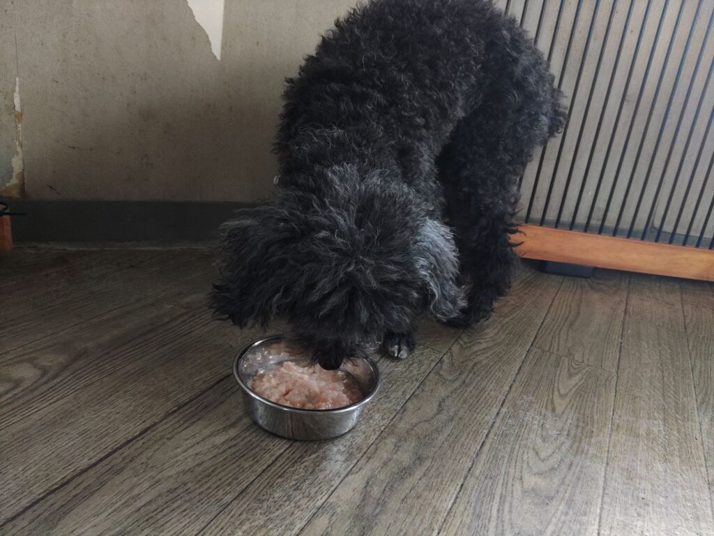 生涯お預かりトイプーコタローくんちゅーるをトッピングしたらちゅーるだけ食べました。しばらく置いておきます。