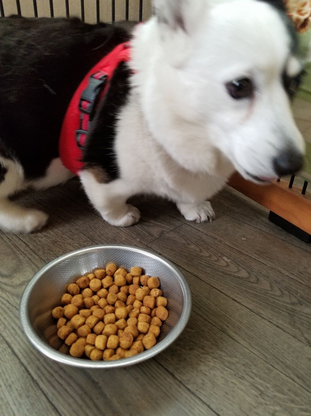 コーギー親子ナナちゃん、フーちゃんしばらく置いておいたら完食してありました。