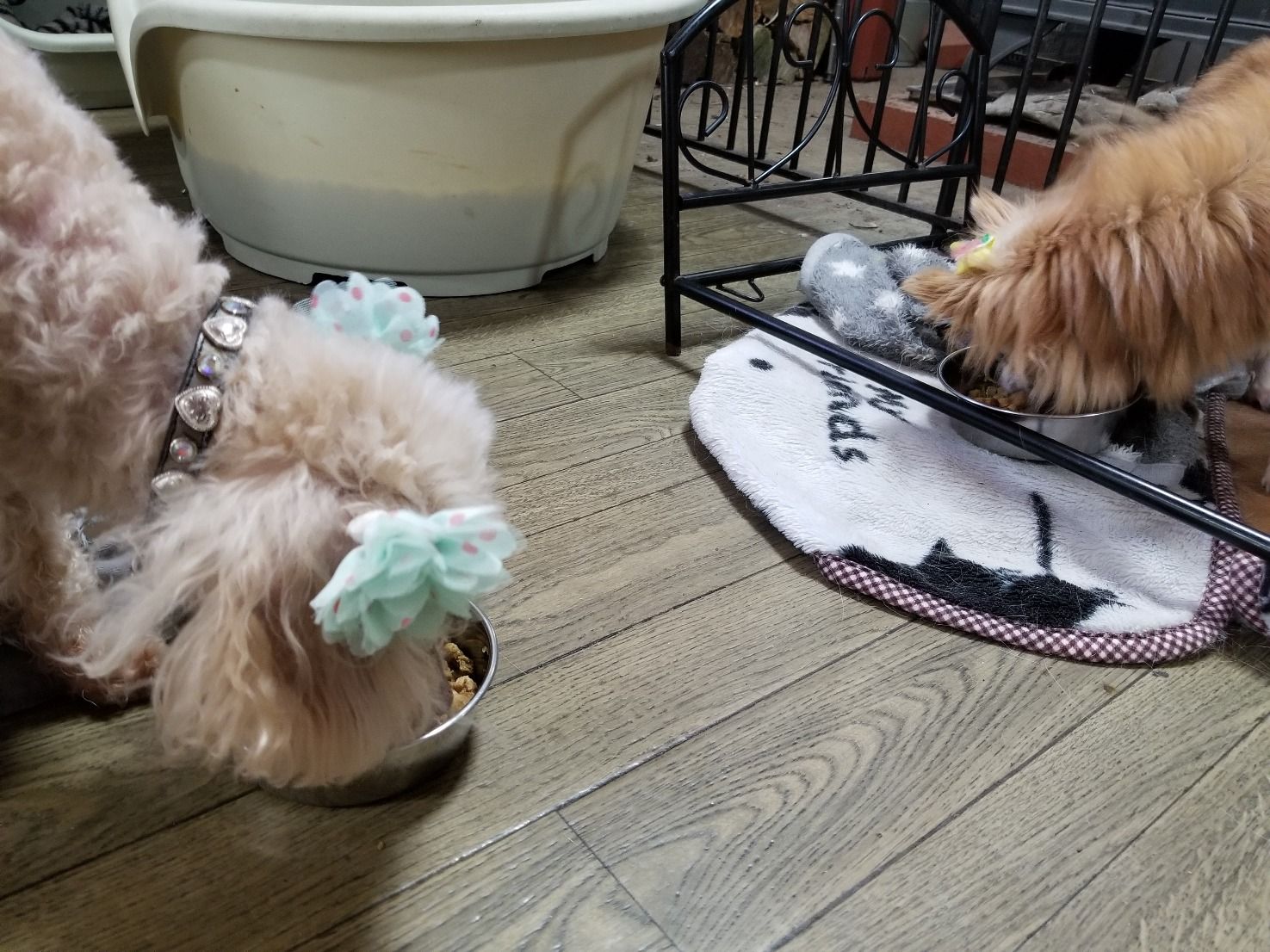 生涯お預かりトイプーベラちゃん、柴犬凜ちゃんしっかり完食しました。