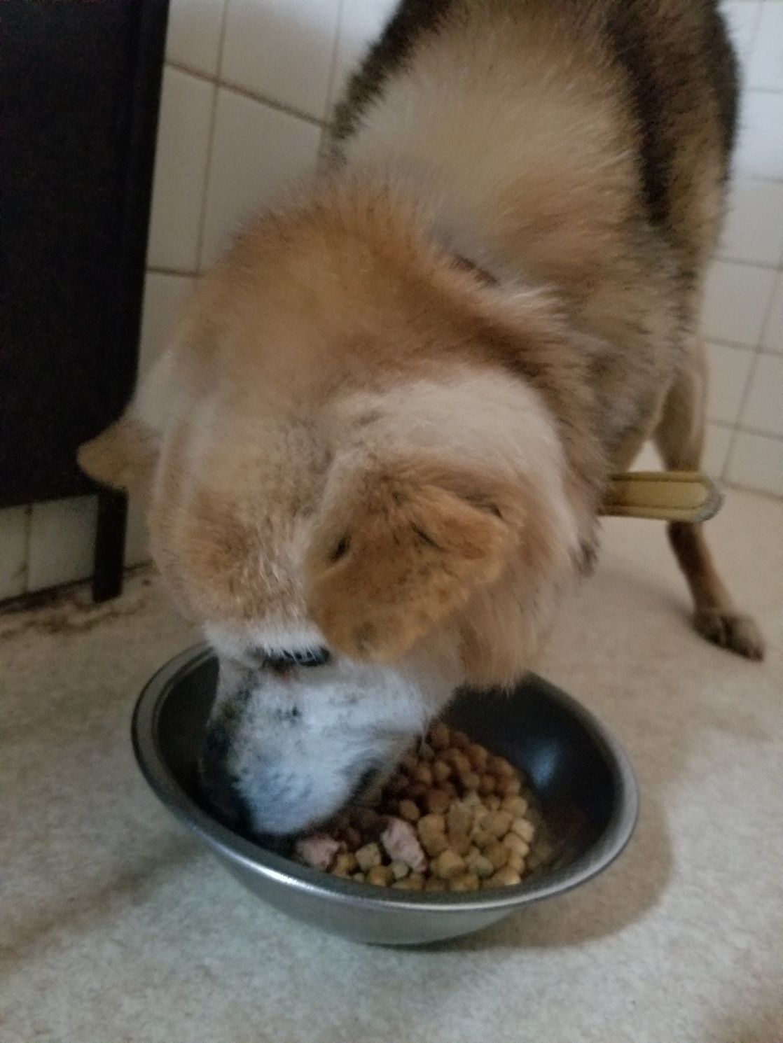 生涯お預かりミックスのんちゃん、ダックスロッキーくんしっかり完食しました。