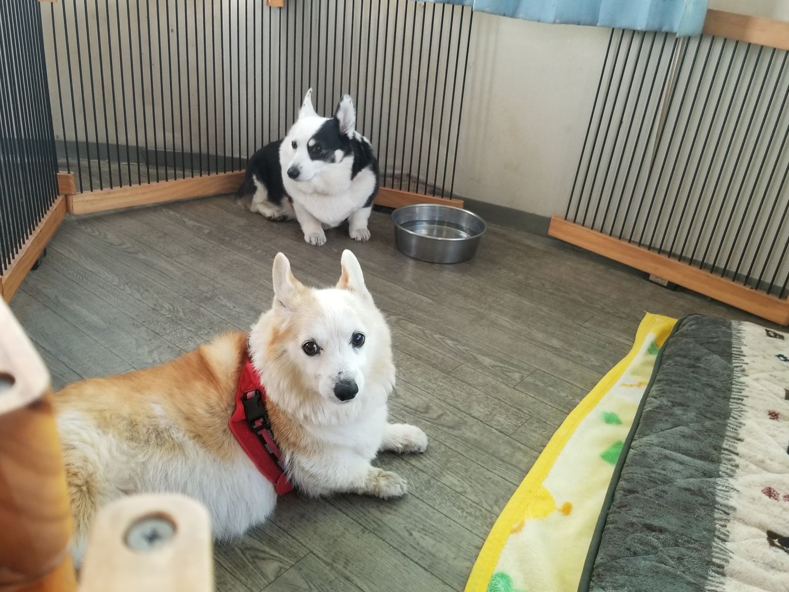 常連さんのコーギー親子ナナちゃんとフーちゃんがチェックインしました。