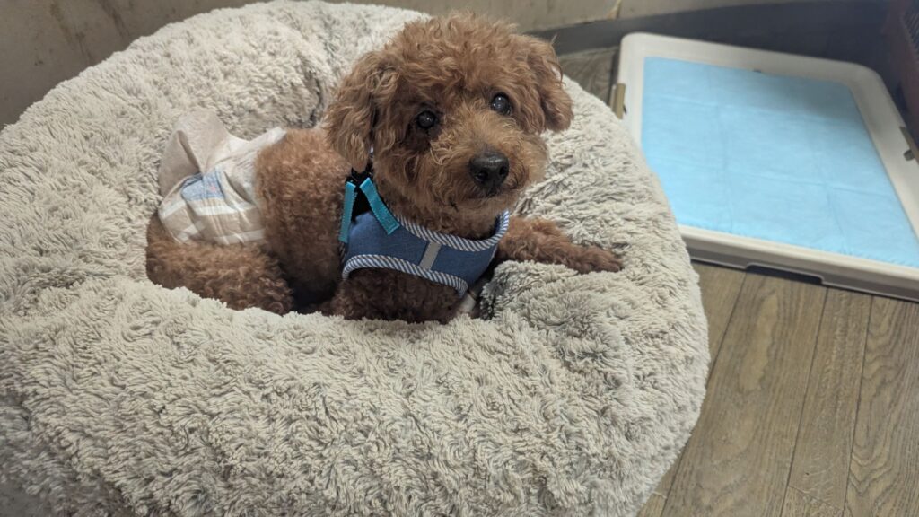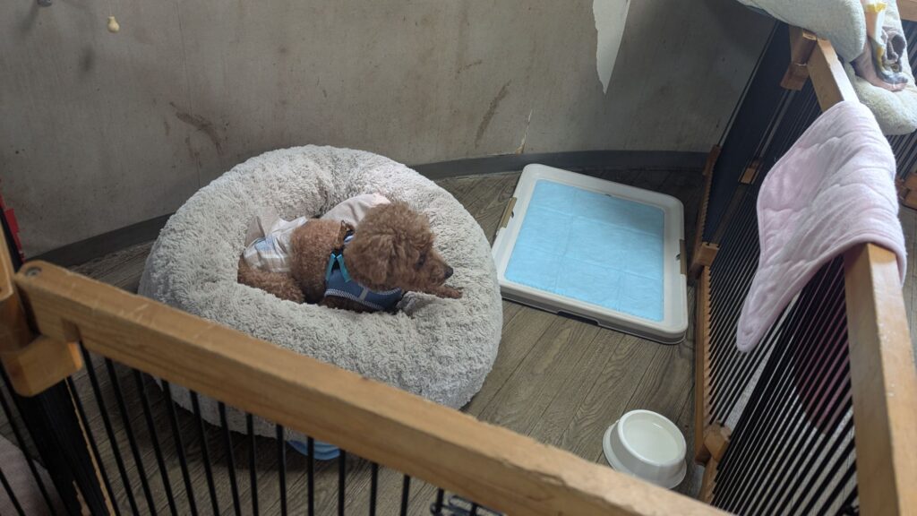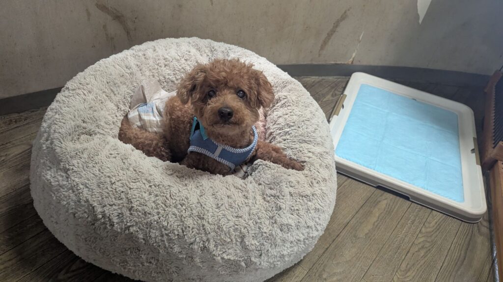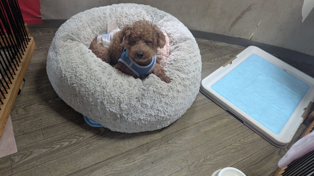 先週も来てくれたトイプージェイくんがチェックインしました。今日もベットで落ち着いています。しばらくそのままにしておいて出たくなったら出ようね!