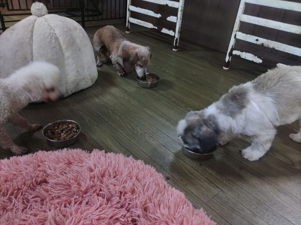 生涯お預かりミックスサスケくん、柴犬ハルちゃん、マルプーらんまるくん、ボルゾイはなこちゃんしっかり完食しました。