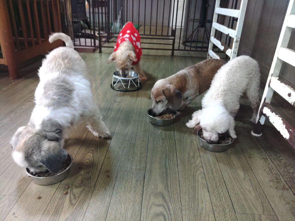 生涯お預かりミックスサスケくん、柴犬ハルちゃん、マルプーらんまるくん、ボルゾイはなこちゃんしっかり完食しました。