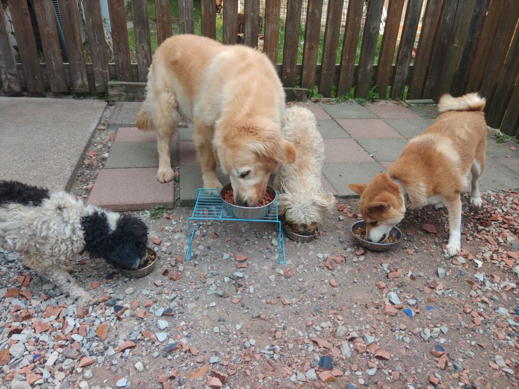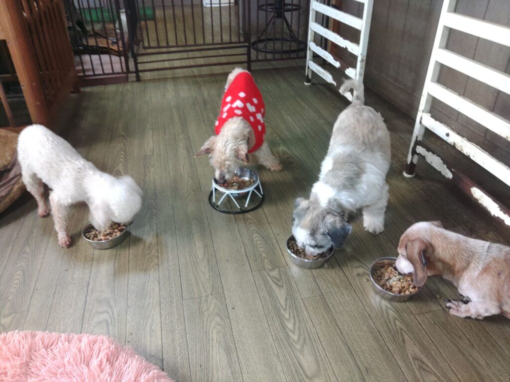 生涯お預かりミックスサスケくん、柴犬ハルちゃん、マルプーらんまるくん、ボルゾイはなこちゃんしっかり完食しました。