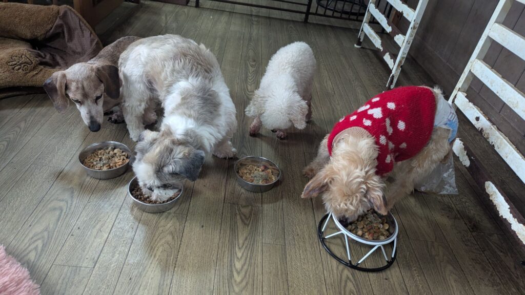 生涯お預かりミックスサスケくん、柴犬ハルちゃん、マルプーらんまるくん、ボルゾイはなこちゃんしっかり完食しました。