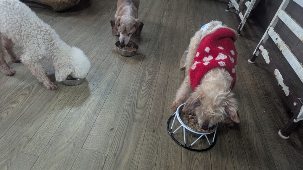 生涯お預かりミックスサスケくん、柴犬ハルちゃん、マルプーらんまるくん、ボルゾイはなこちゃんしっかり完食しました。