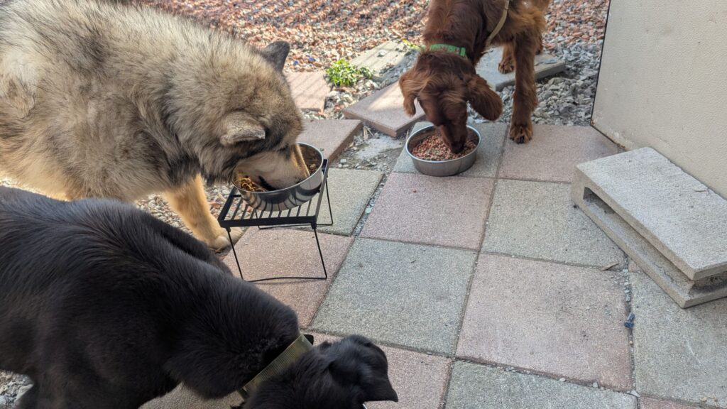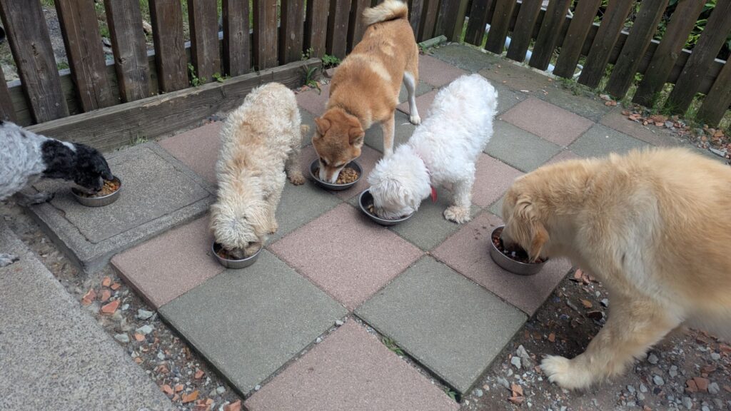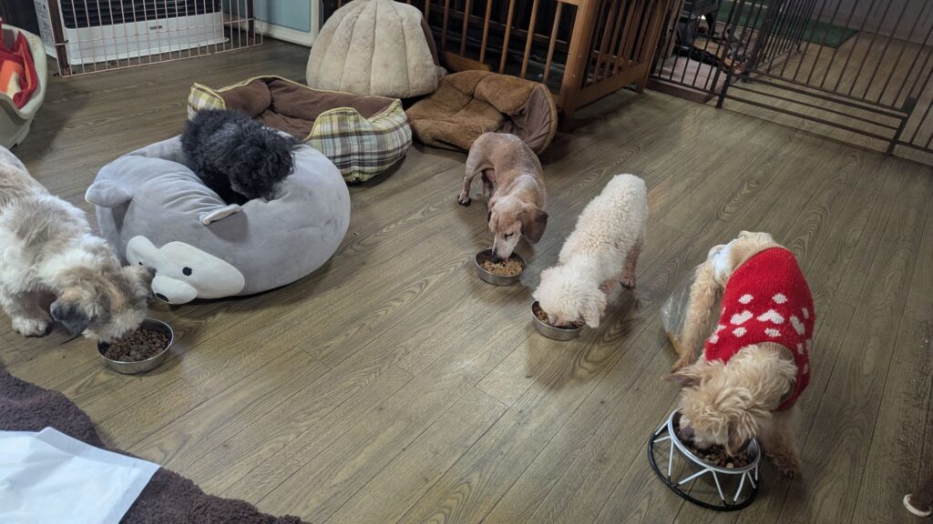 生涯お預かりミックスサスケくん、柴犬ハルちゃん、マルプーらんまるくん、ボルゾイはなこちゃんしっかり完食しました。