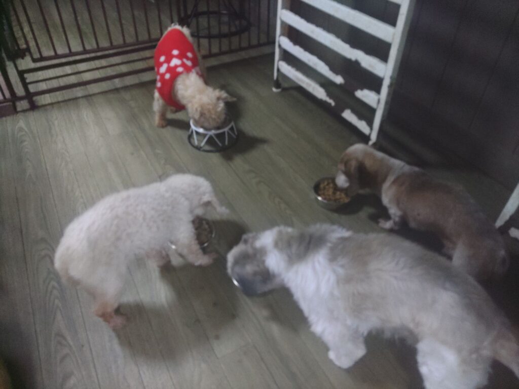 生涯お預かりミックスサスケくん、柴犬ハルちゃん、マルプーらんまるくん、ボルゾイはなこちゃんしっかり完食しました。