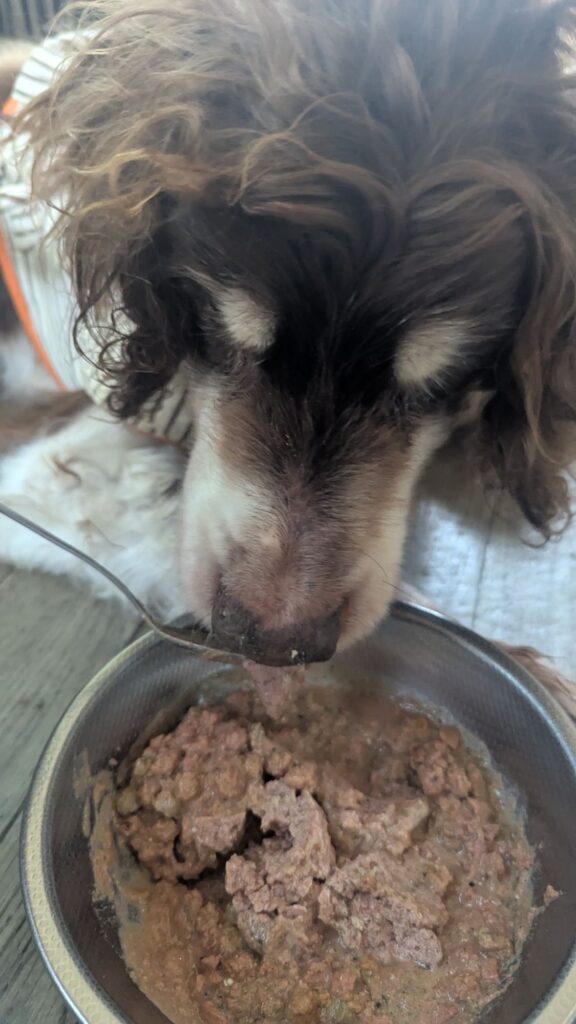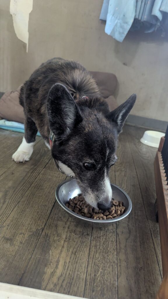 コーギーあずきちゃんちゅーるを混ぜたら少しだけ食べました。