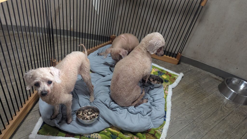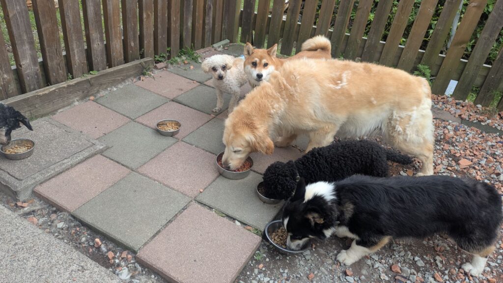 生涯お預かりミックスサスケくん、ココちゃん、柴犬ハルちゃん、マルプーらんまるくん、ボルゾイはなこちゃんしっかり完食しました。