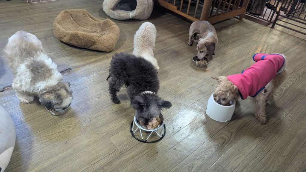 生涯お預かりミックスサスケくん、ココちゃん、柴犬ハルちゃん、マルプーらんまるくん、ボルゾイはなこちゃんしっかり完食しました。
