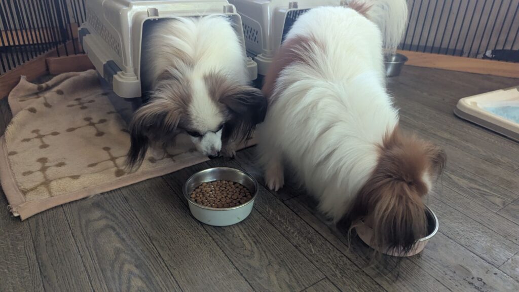 パピヨンズマックスくん口をつけませんでした。モネちゃんはしっかり完食しました。