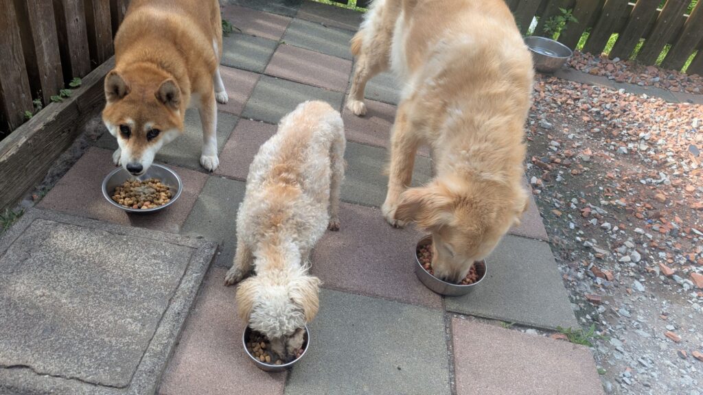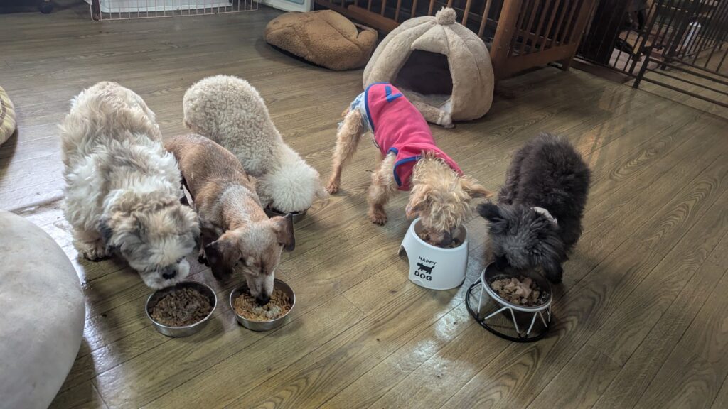 生涯お預かりミックスサスケくん、ココちゃん、柴犬ハルちゃん、マルプーらんまるくん、ボルゾイはなこちゃんしっかり完食しました。