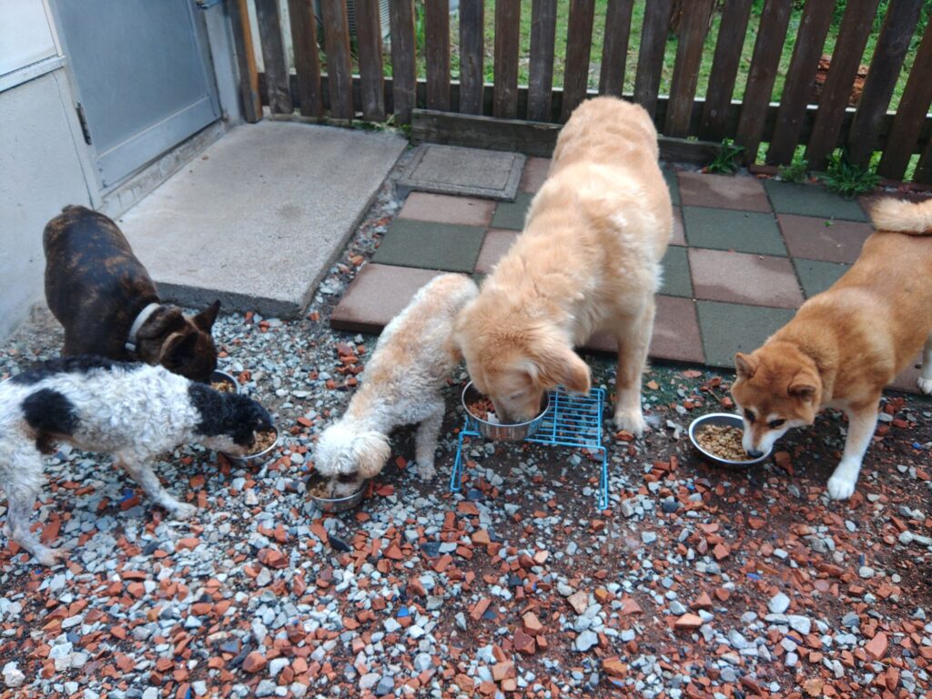 生涯お預かりミックスサスケくん、柴犬ハルちゃん、マルプーらんまるくん、ボルゾイはなこちゃんしっかり完食しました。
