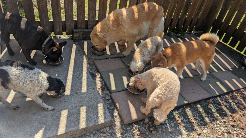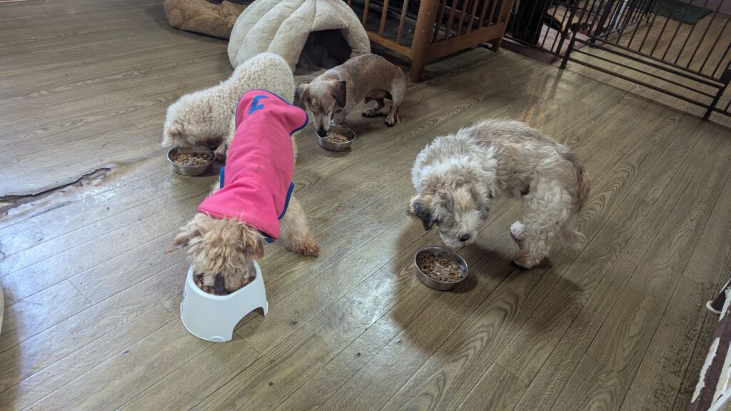生涯お預かりミックスサスケくん、柴犬ハルちゃん、マルプーらんまるくん、ボルゾイはなこちゃんしっかり完食しました。